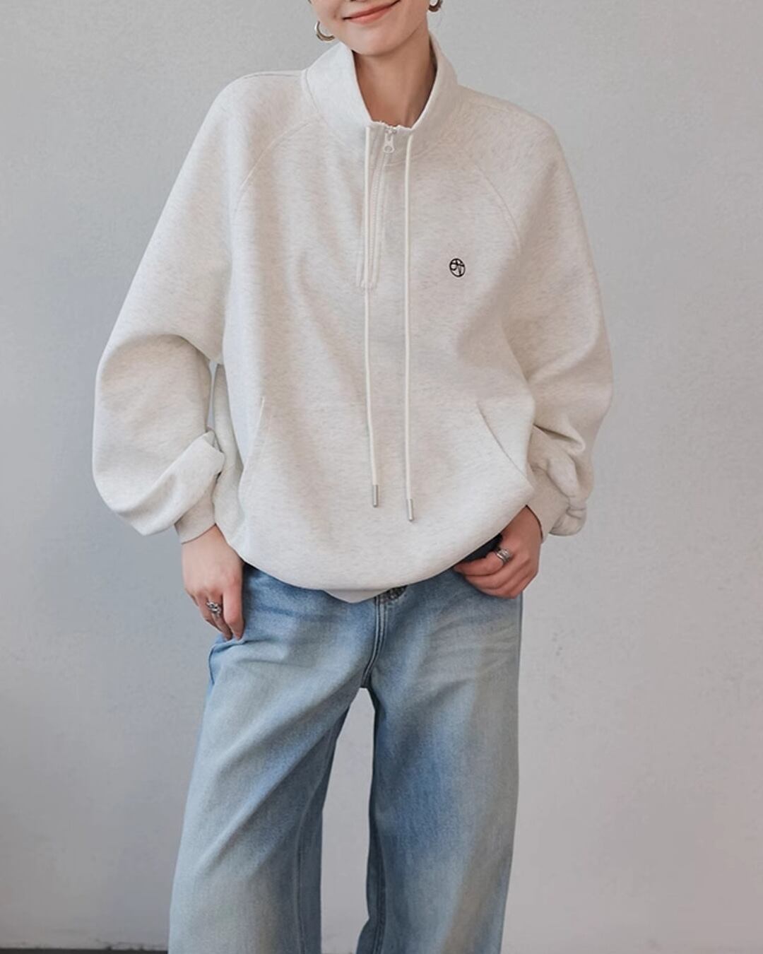 1枚で着てもレイヤードしても可愛いハーフジップスウェット。