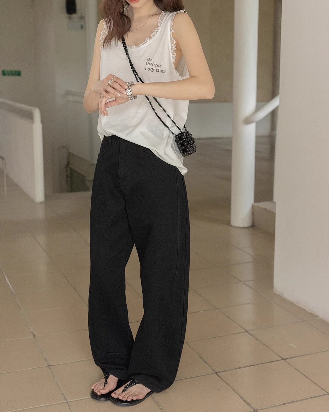 いつものトップスに合わせるだけで、旬なスタイルが叶うアイテムです。