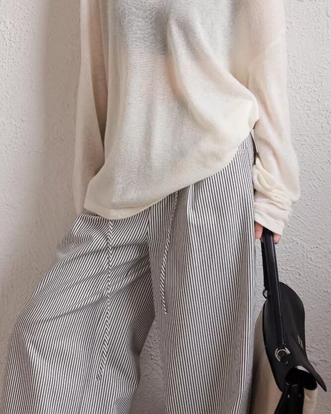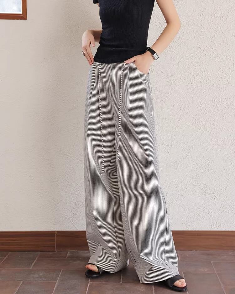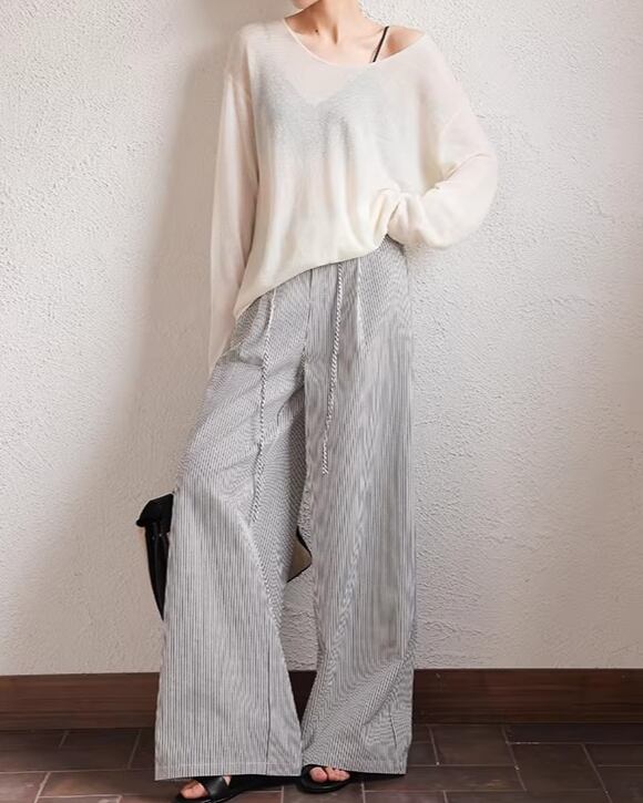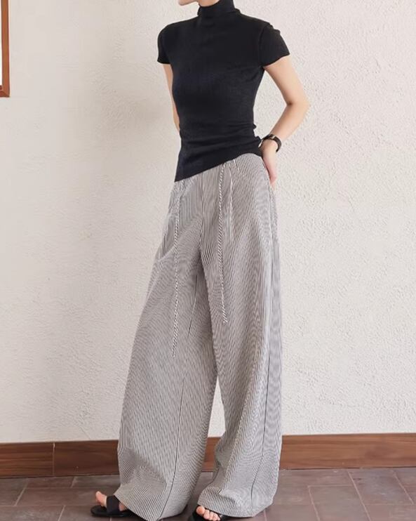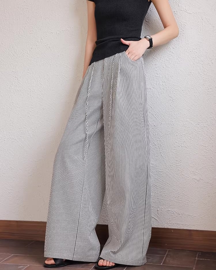 Stripe Pattern Wide Leg Full Length Pants L0007
