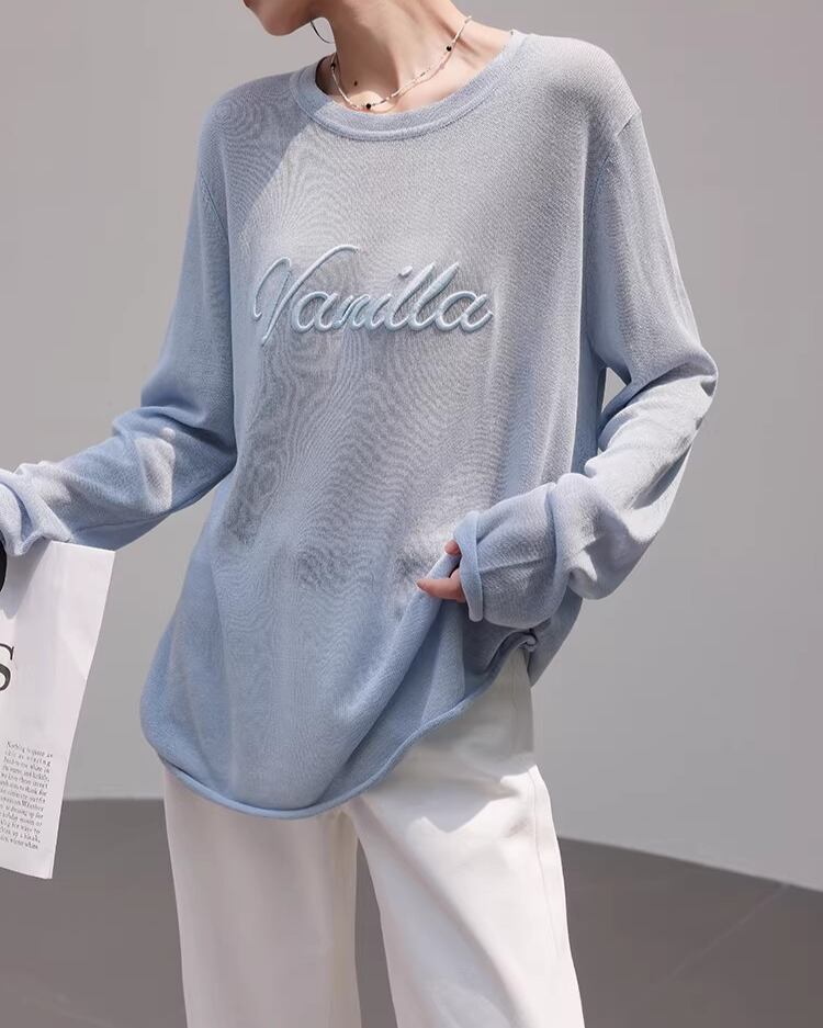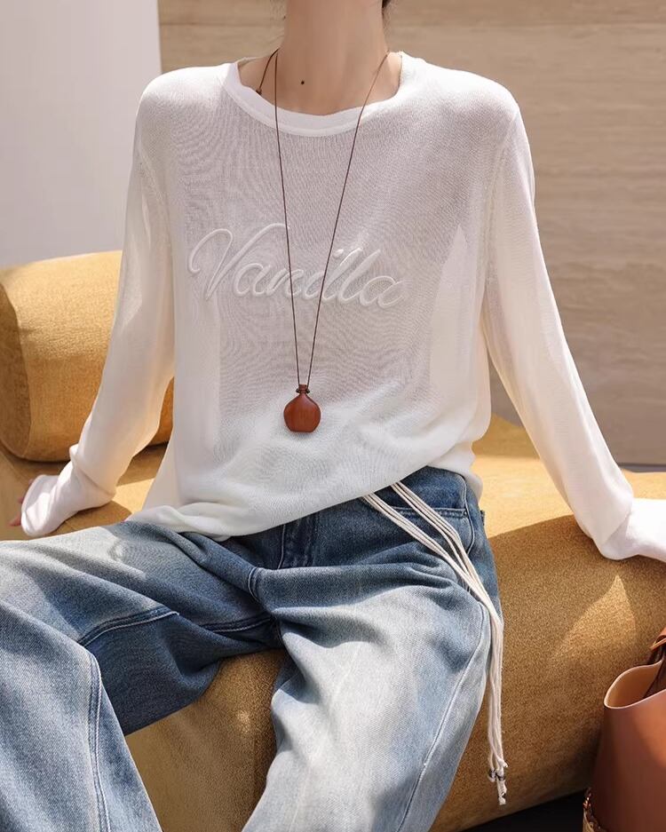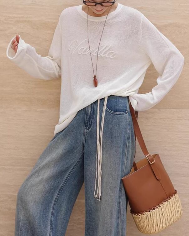 デニムやスカートなど、どんなボトムスにも合わせやすいのが魅力です。