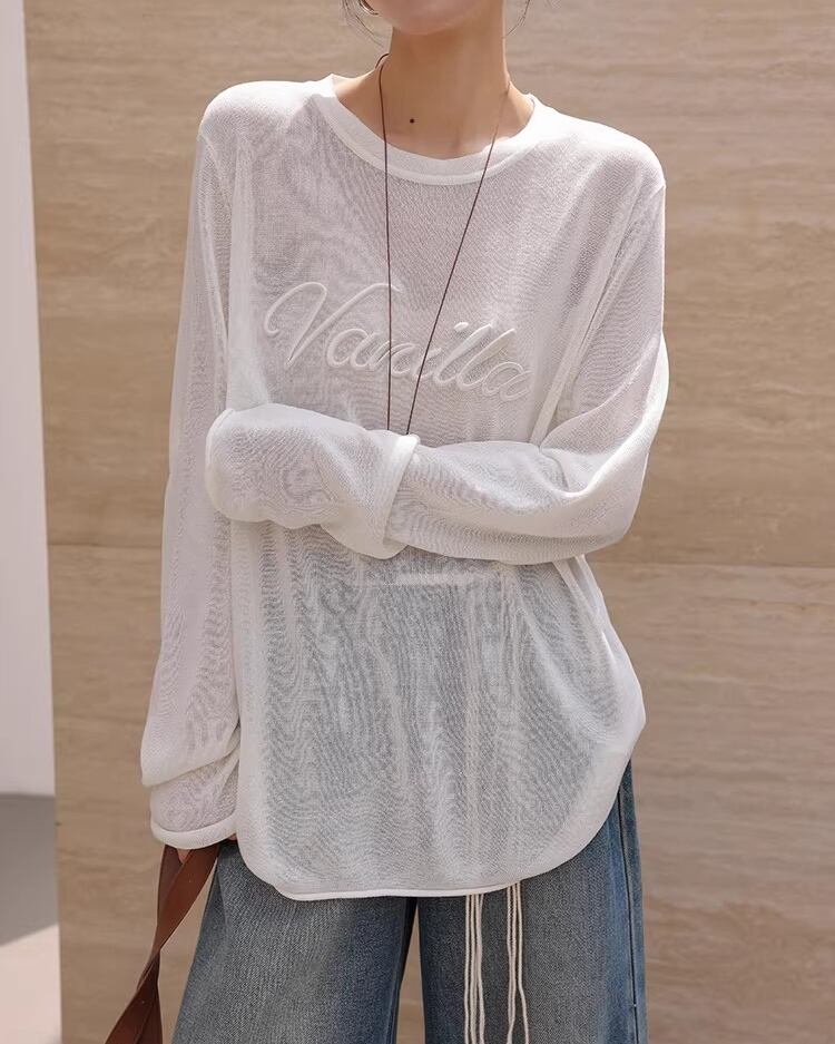 Long-sleeve hip-length drop shoulder T L0004