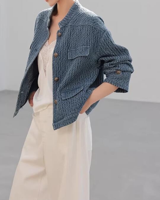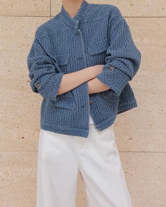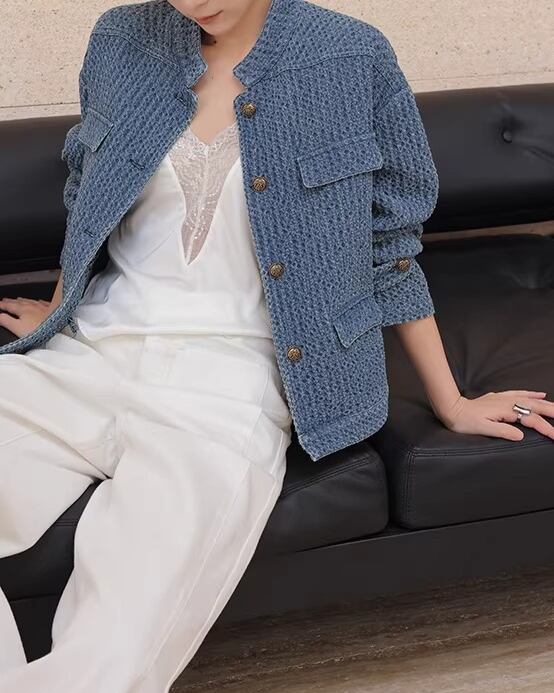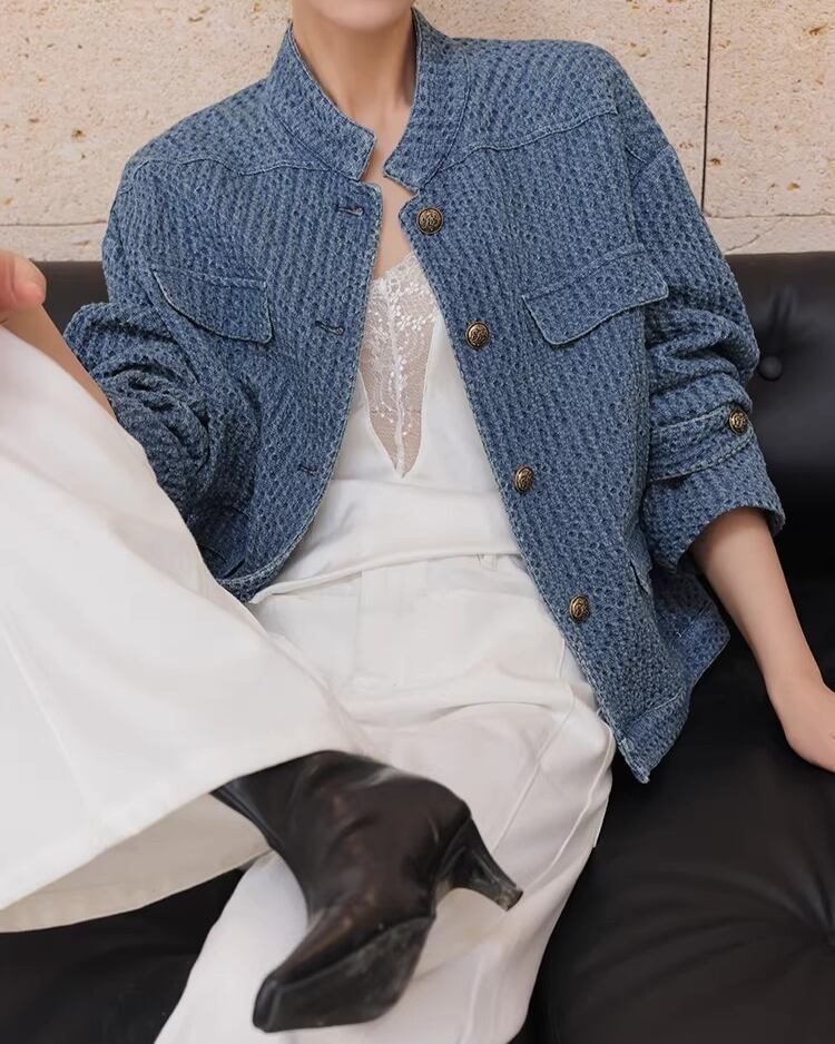 Button Front No-Collar Jacket L0015