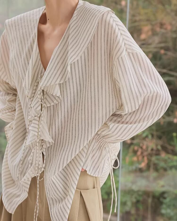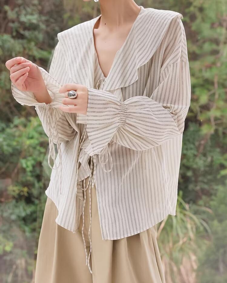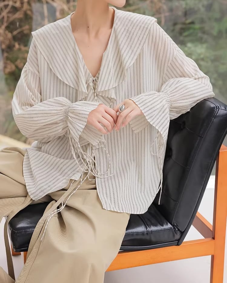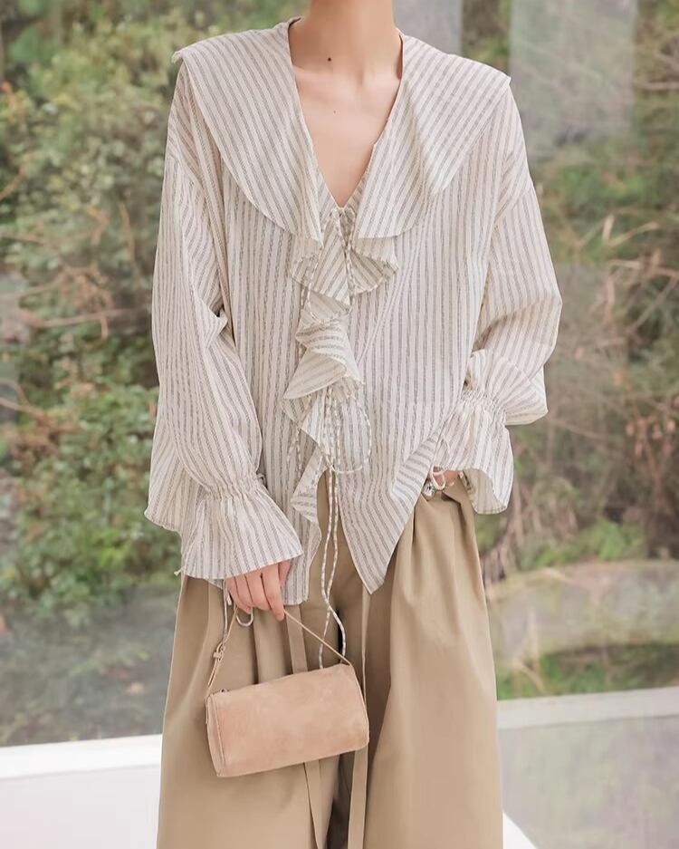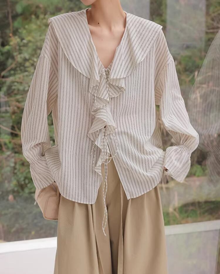Frill Long Sleeve Striped Blouse L0050