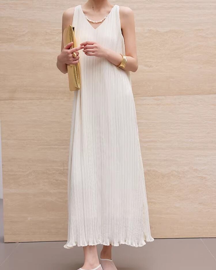 Pleated Sleeveless Long Dress L0040
