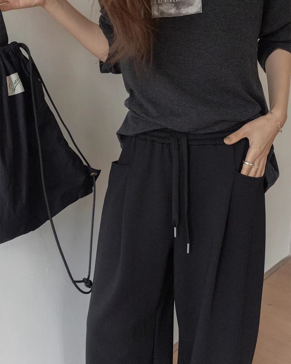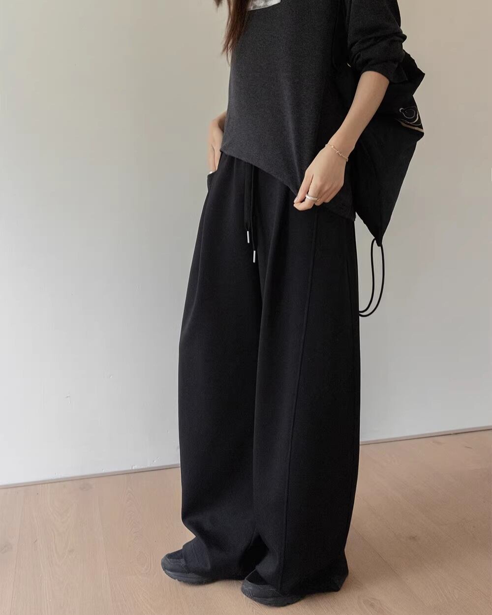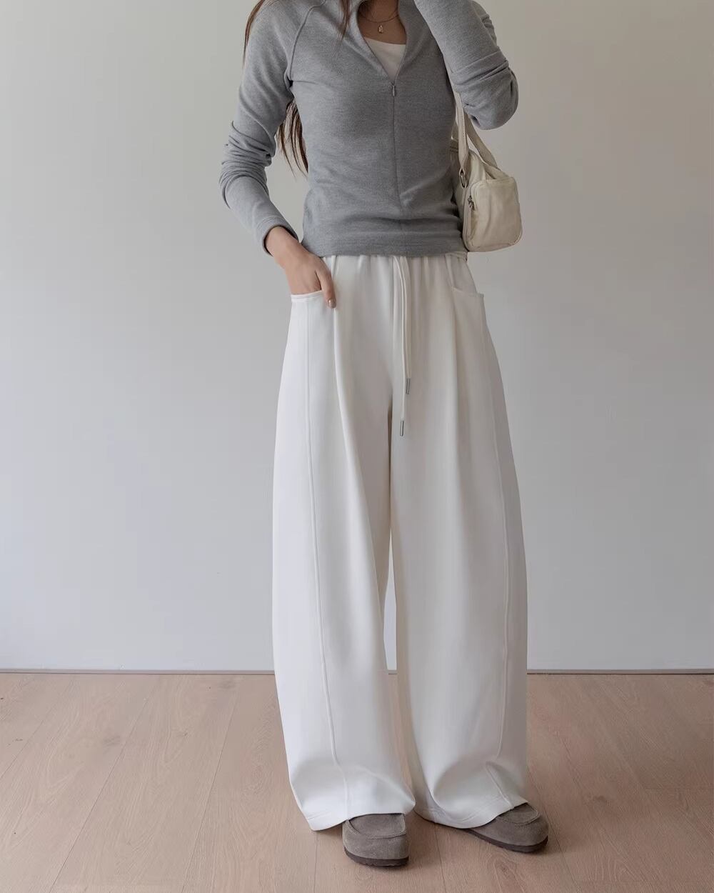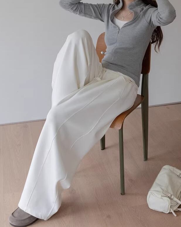 Pocketed Wide Full Length Easy Pants L0026