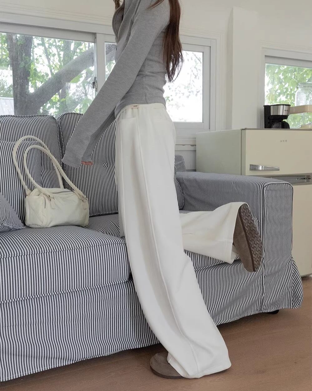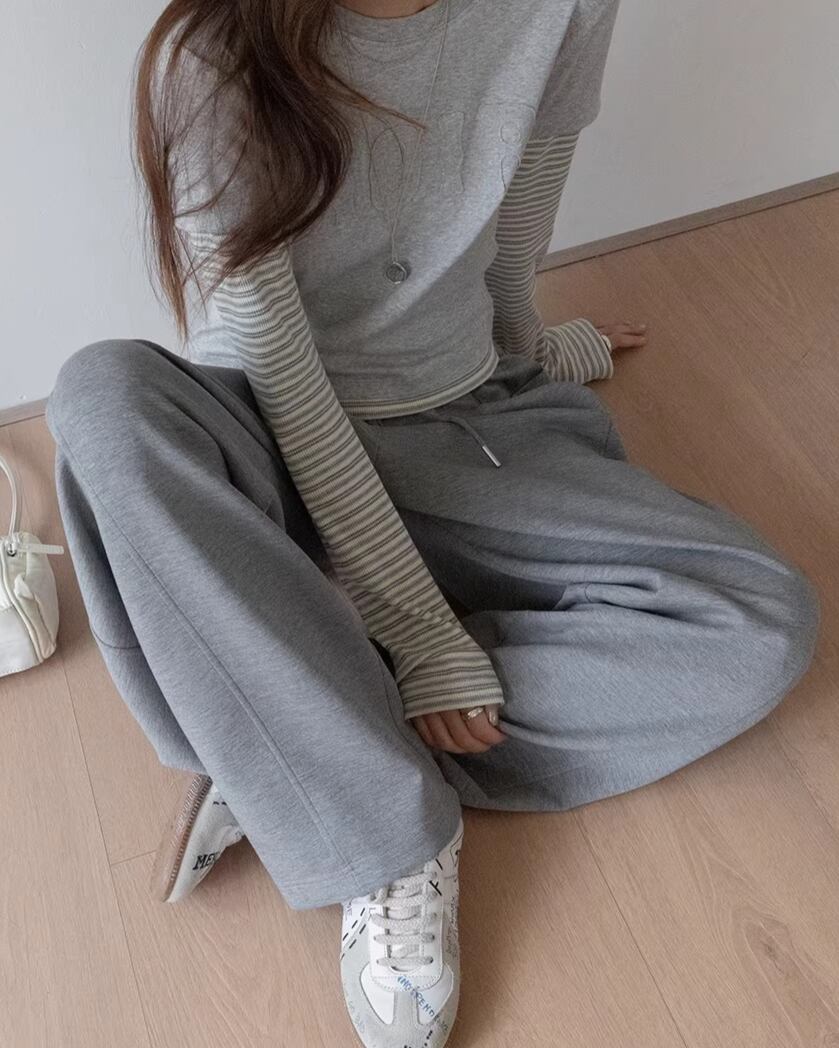 アクティブな日にもぴったりの、動きやすいフルレングスパンツ。
