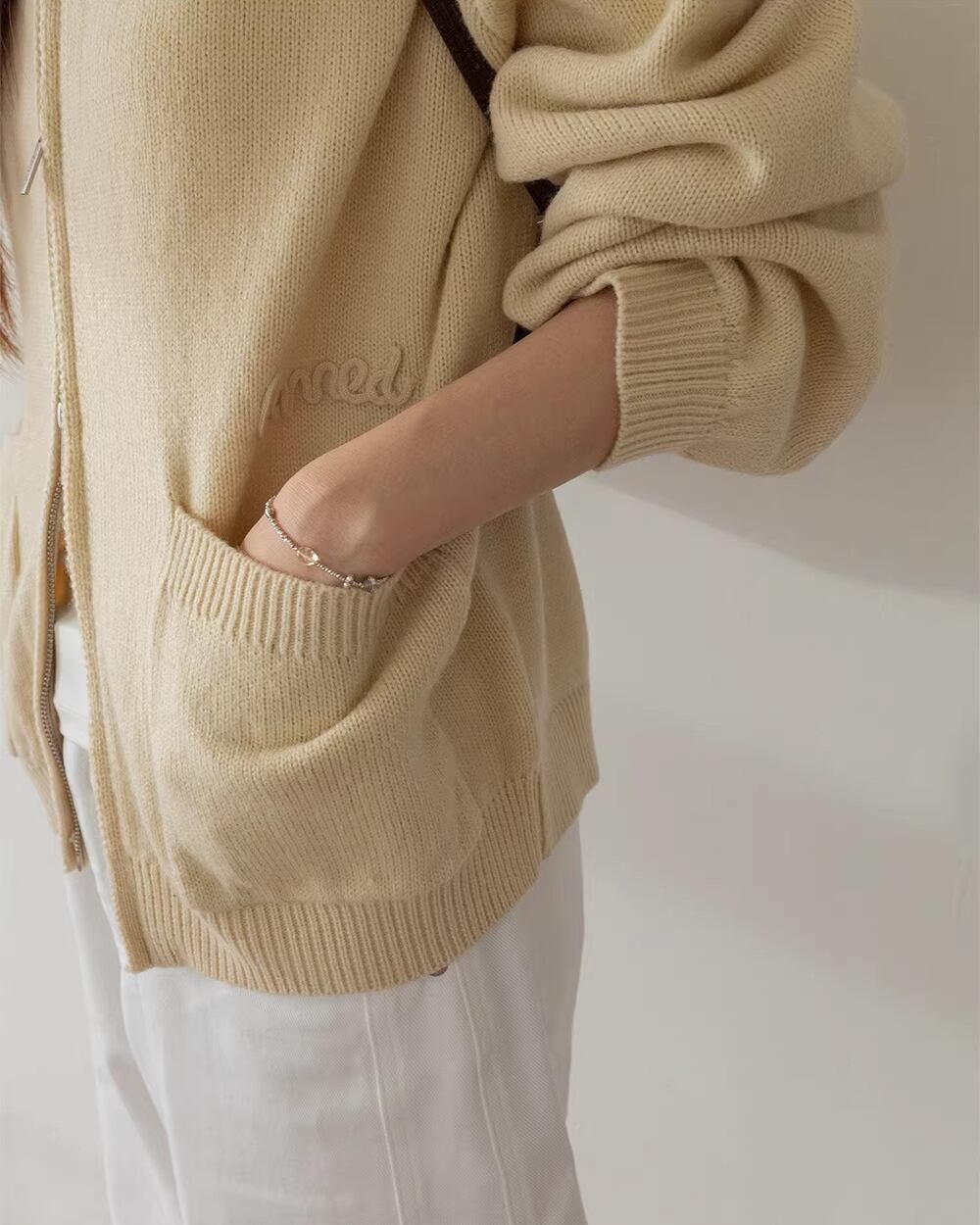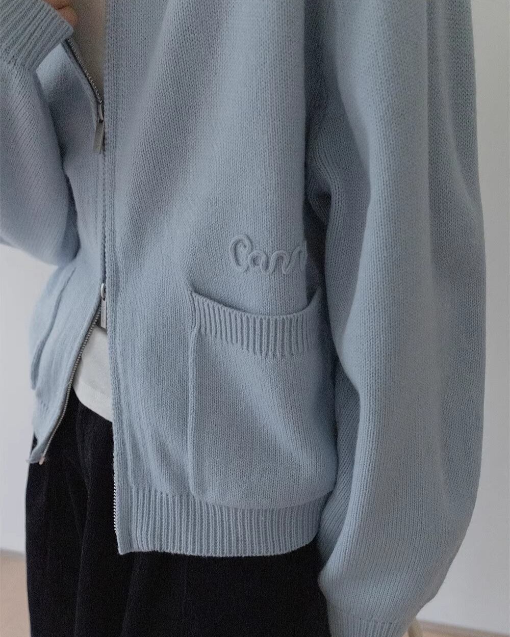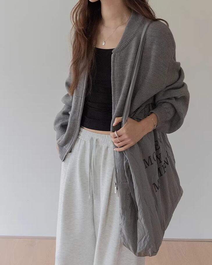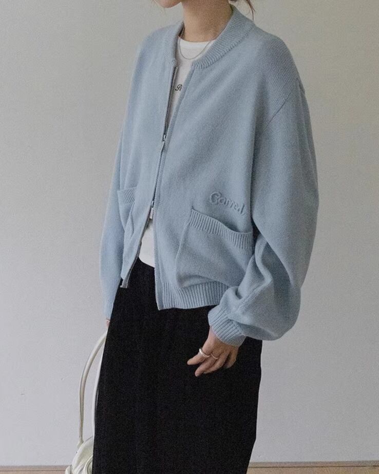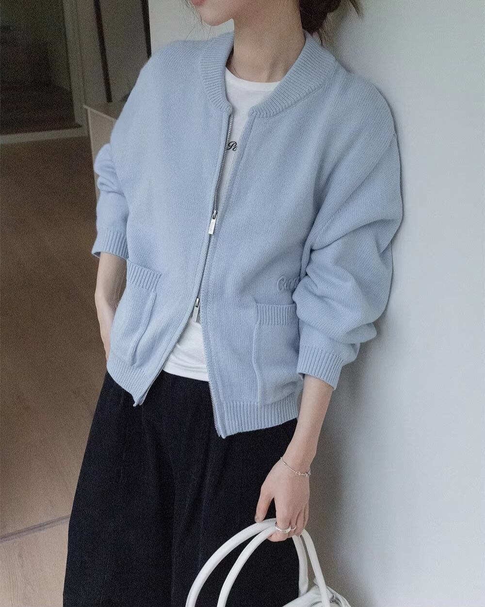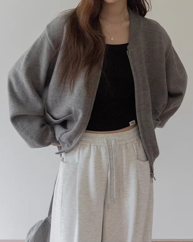 Long Sleeve Zip-Up Waist-Length Knit Cardigan L0033