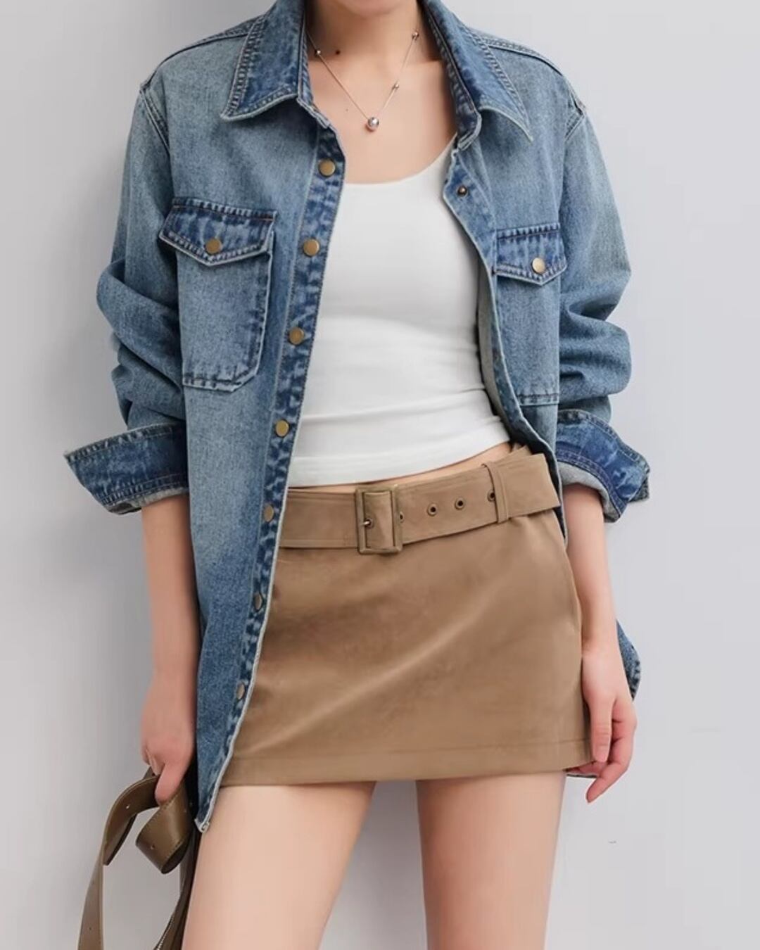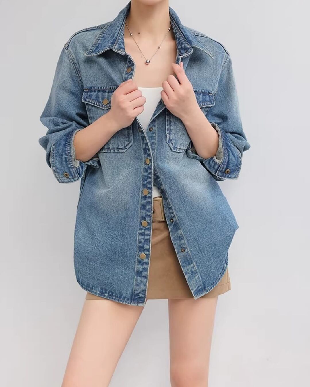 デニムonデニムのスタイリングや、ワンピースに羽織るスタイルもおすすめ。