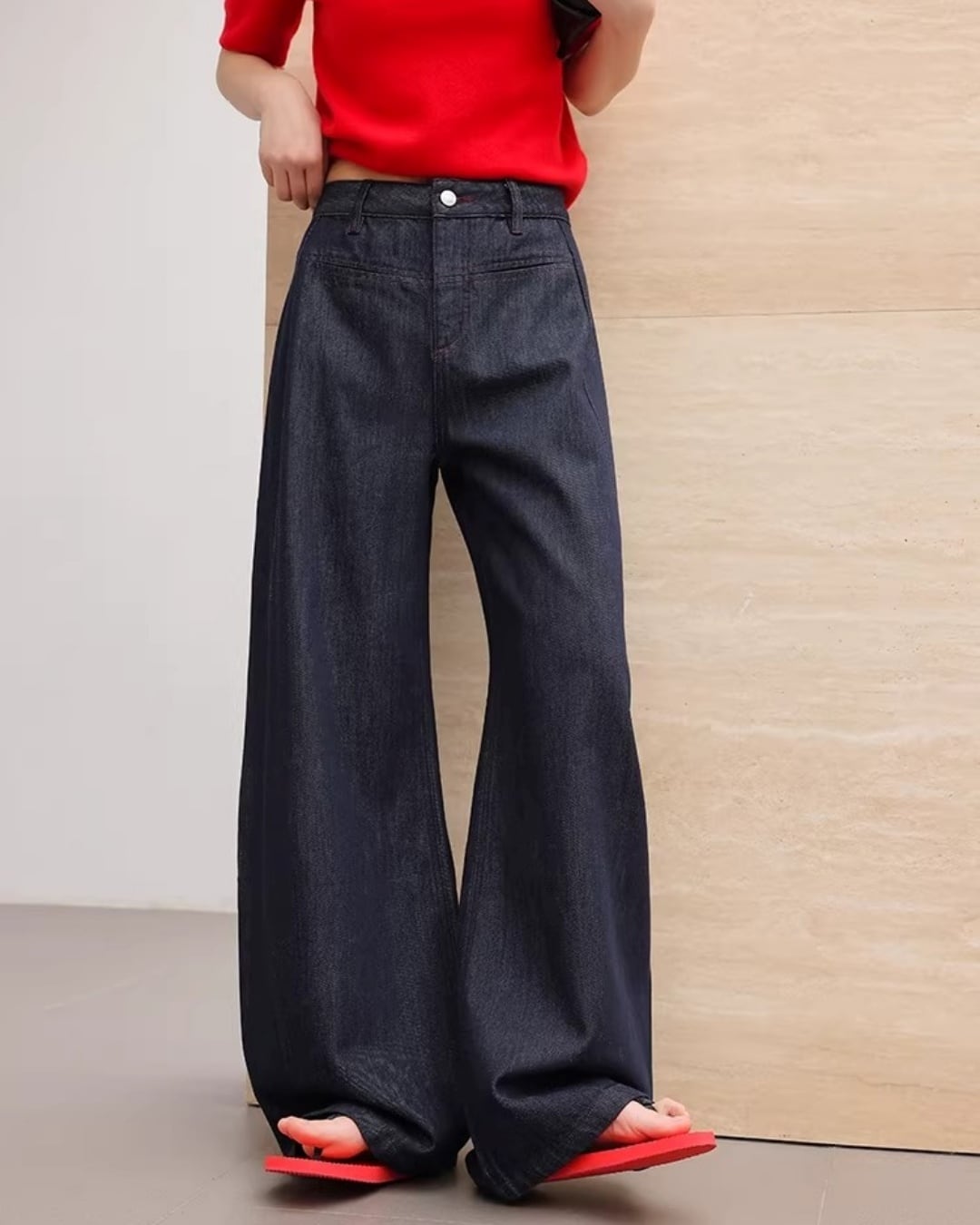 無駄のないワイドシルエットが、洗練された大人のシティスタイルを叶えるデニム。