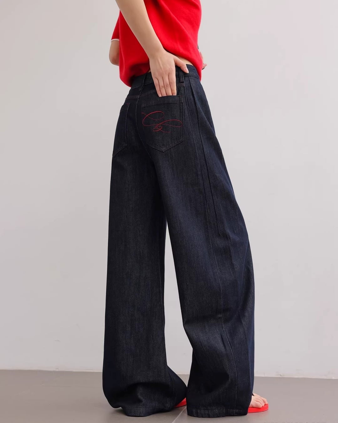 Back embroidered buggy denim Pants L0095