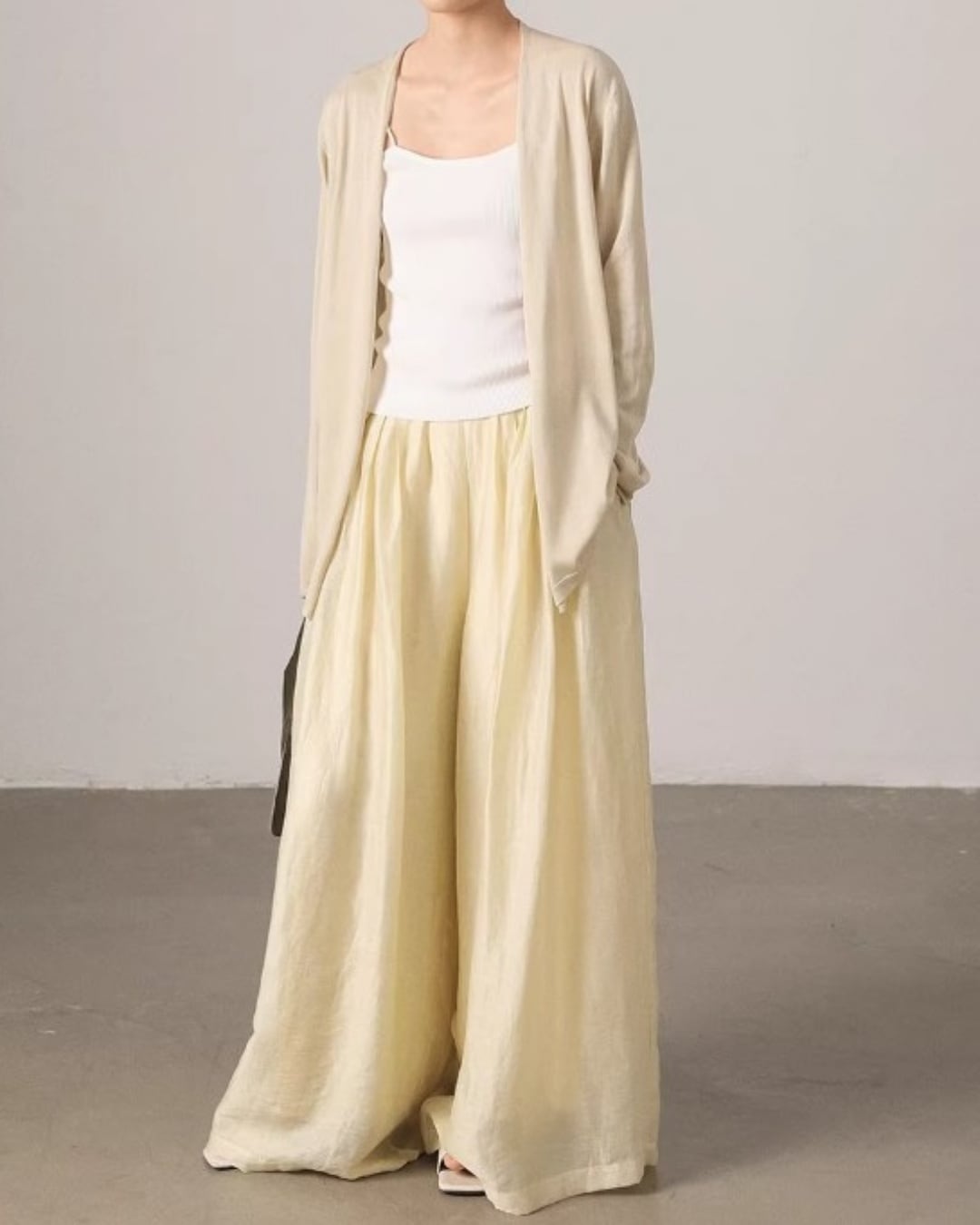 軽く羽織れるオープンフロントの長袖カーディガン。