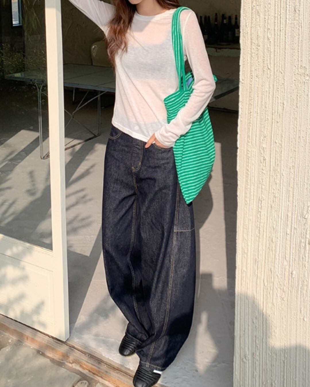 抜け感のあるスタイリングにぴったりのシアートップス。