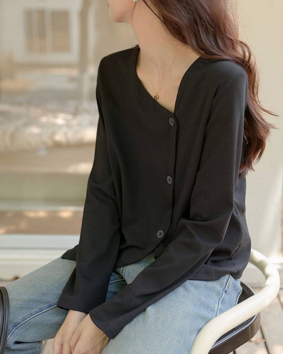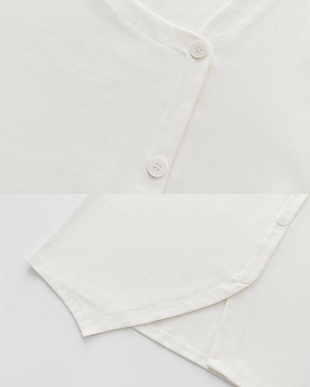 アシンメトリーなデザインが目を引くカーディガンタイプの長袖カットソー。