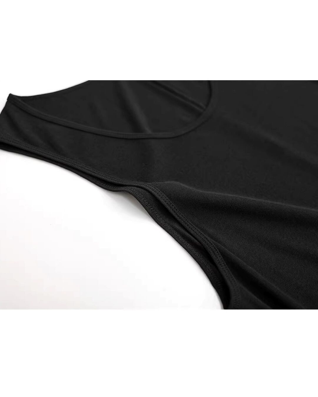 広めのアームホールを活かして、タンクトップを覗かせるレイヤードが映える計算された設計です。