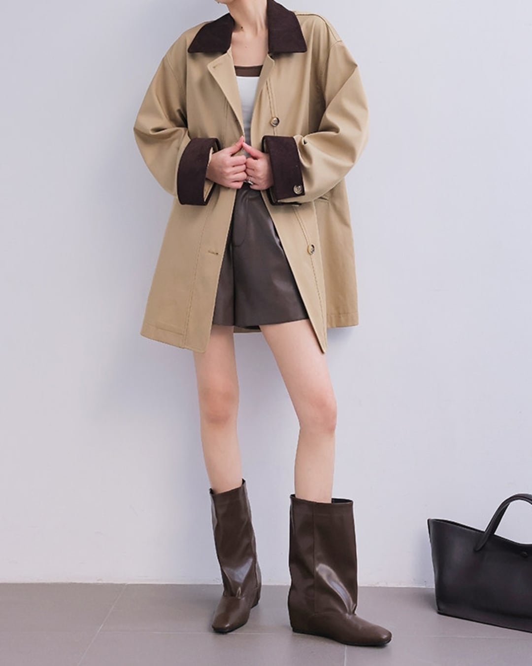 襟と袖の大胆なツートーン配色がコーデにアクセントをプラスします。