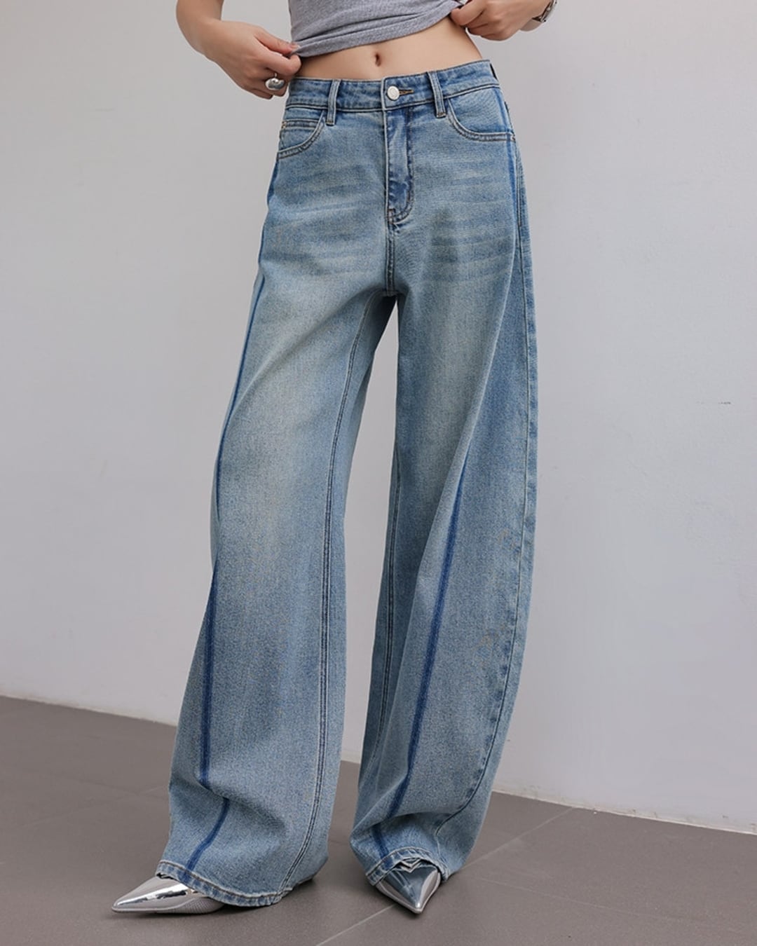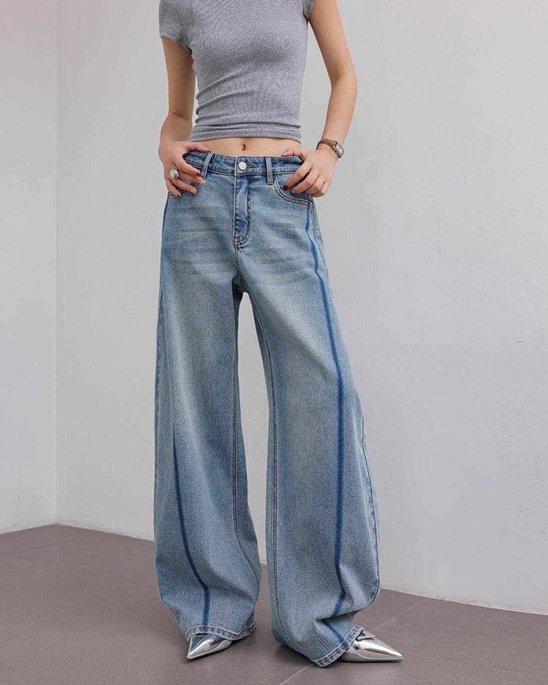 Colorblock wide leg denim pants L0174