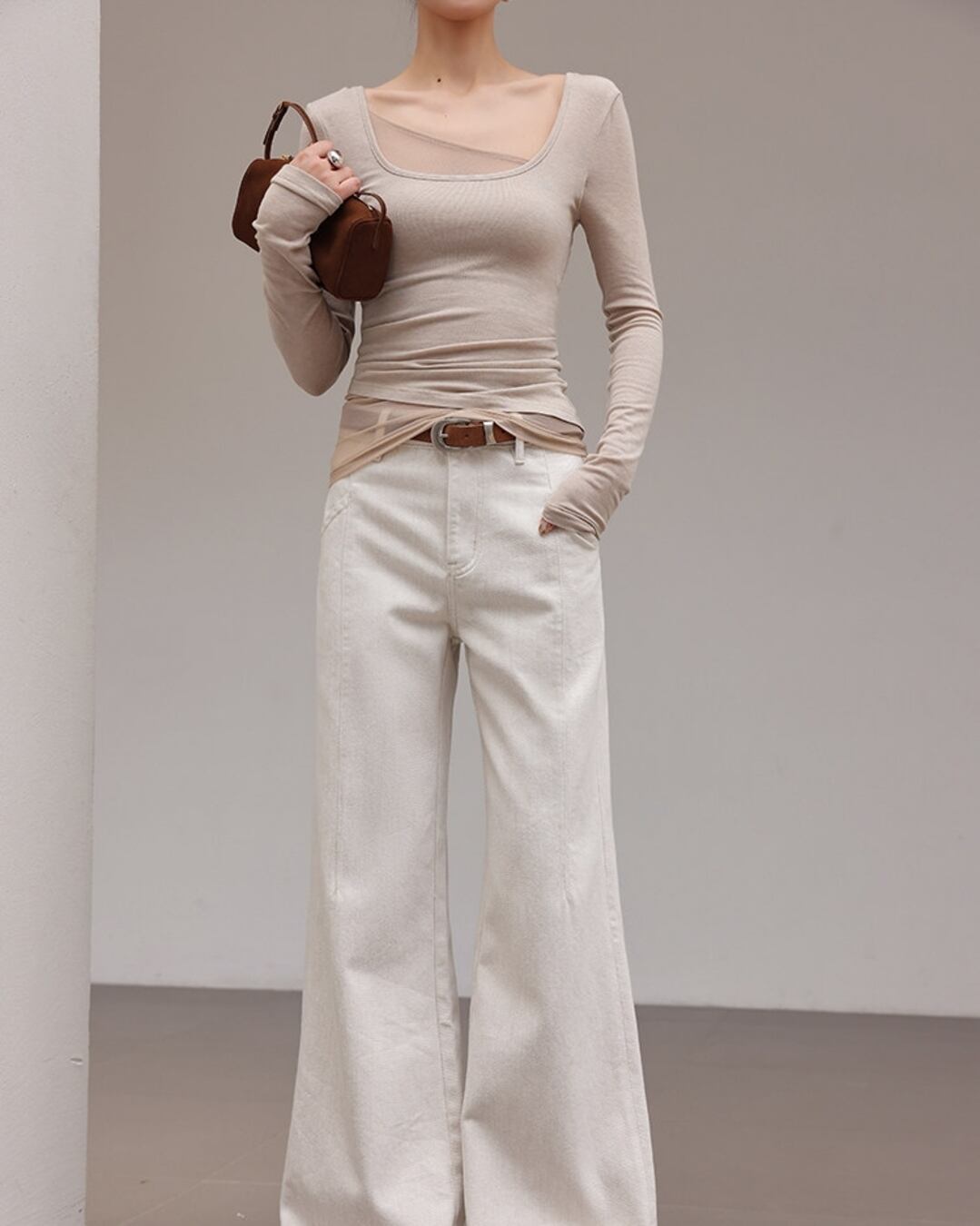 シンプルなラウンドネックは、どんなアイテムとも相性抜群です。
