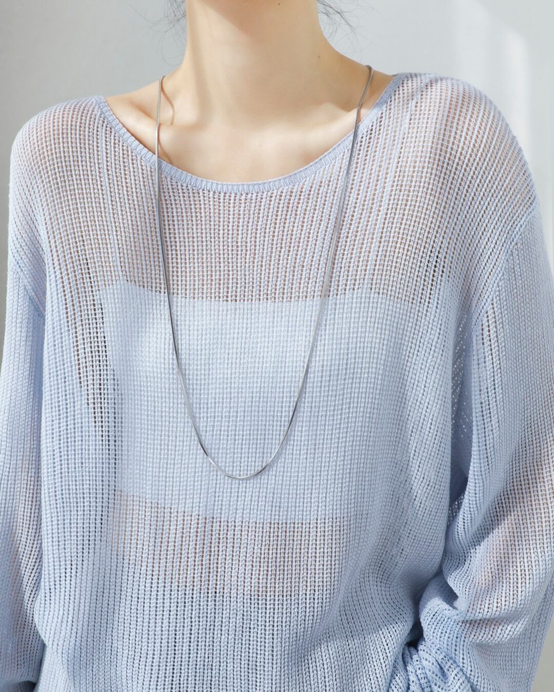 ざっくりとしたメッシュ編みの透け感は、レイヤードスタイルに最適です。