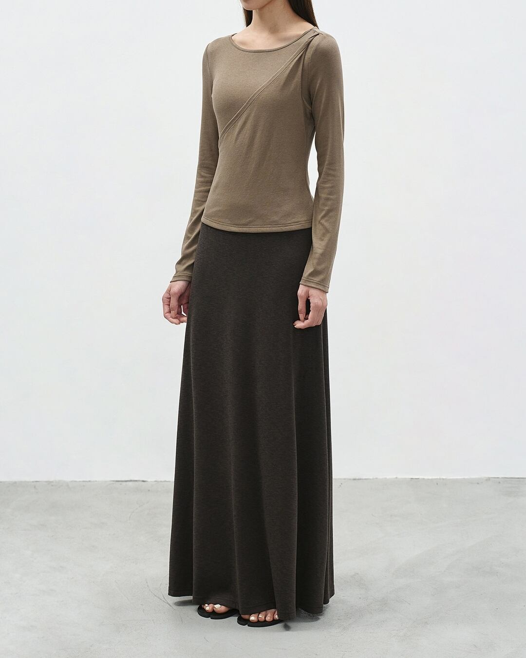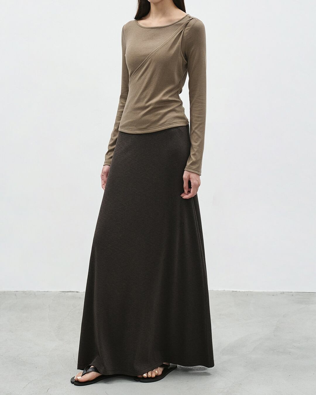 マキシ丈のAラインシルエットが美しいロングスカート。