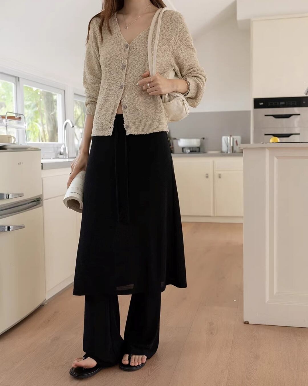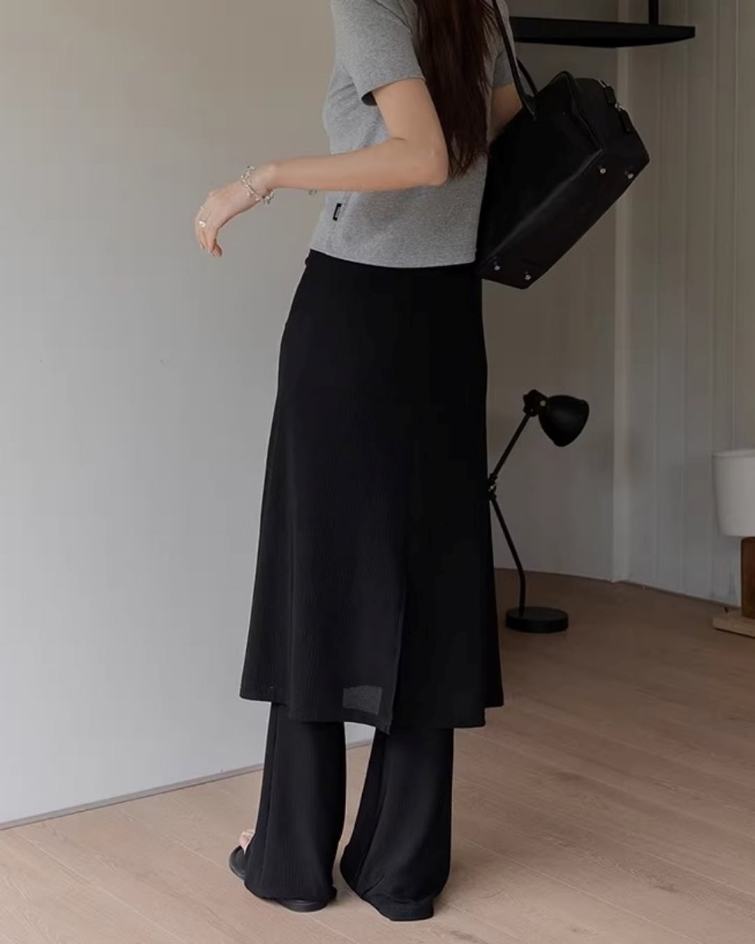 歩くたびに揺れるラップデザインが、都会的でモードな雰囲気を演出します。