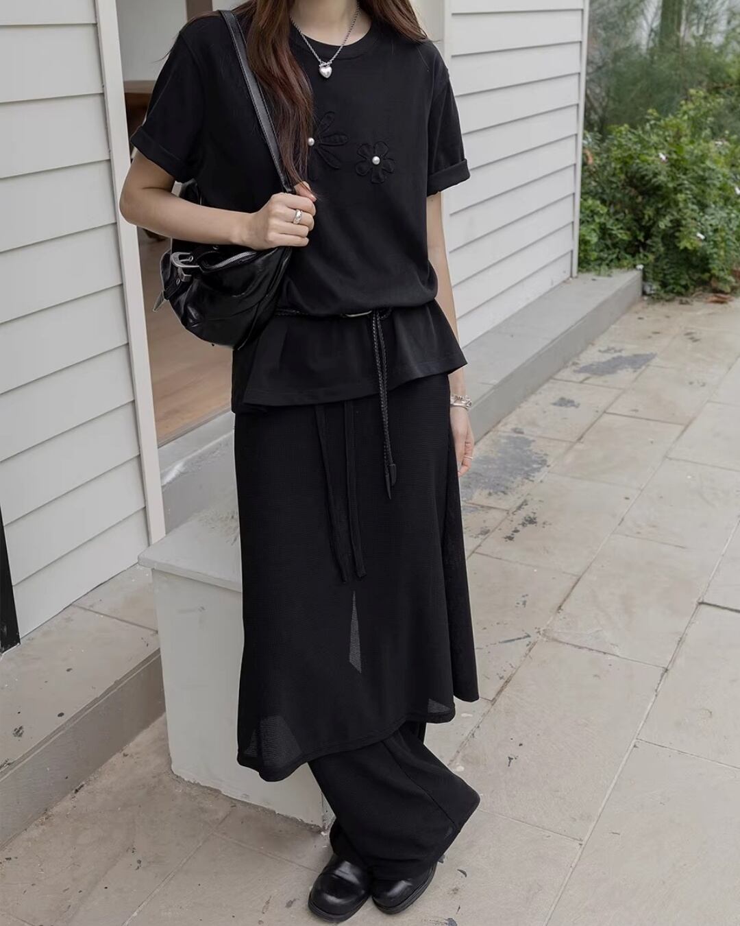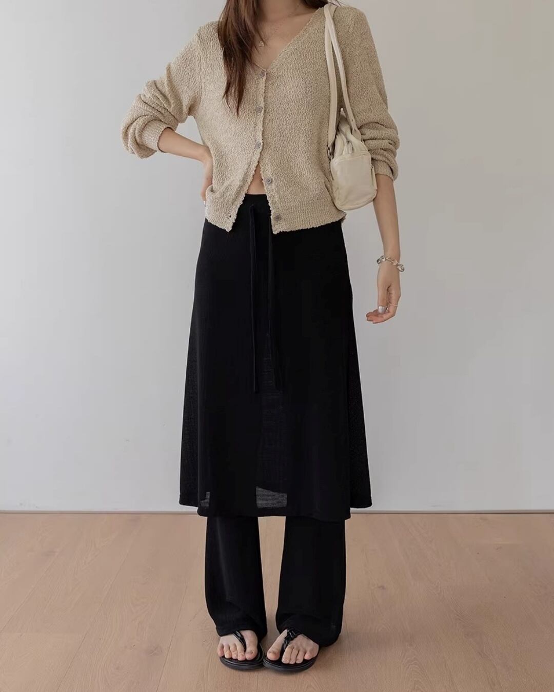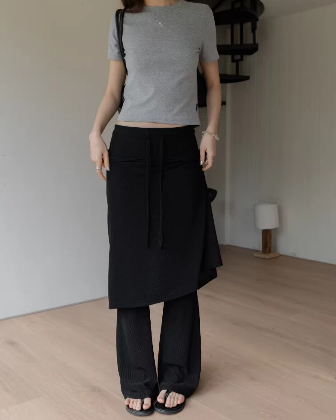 Drawstring layered design skirt Pants L0167
