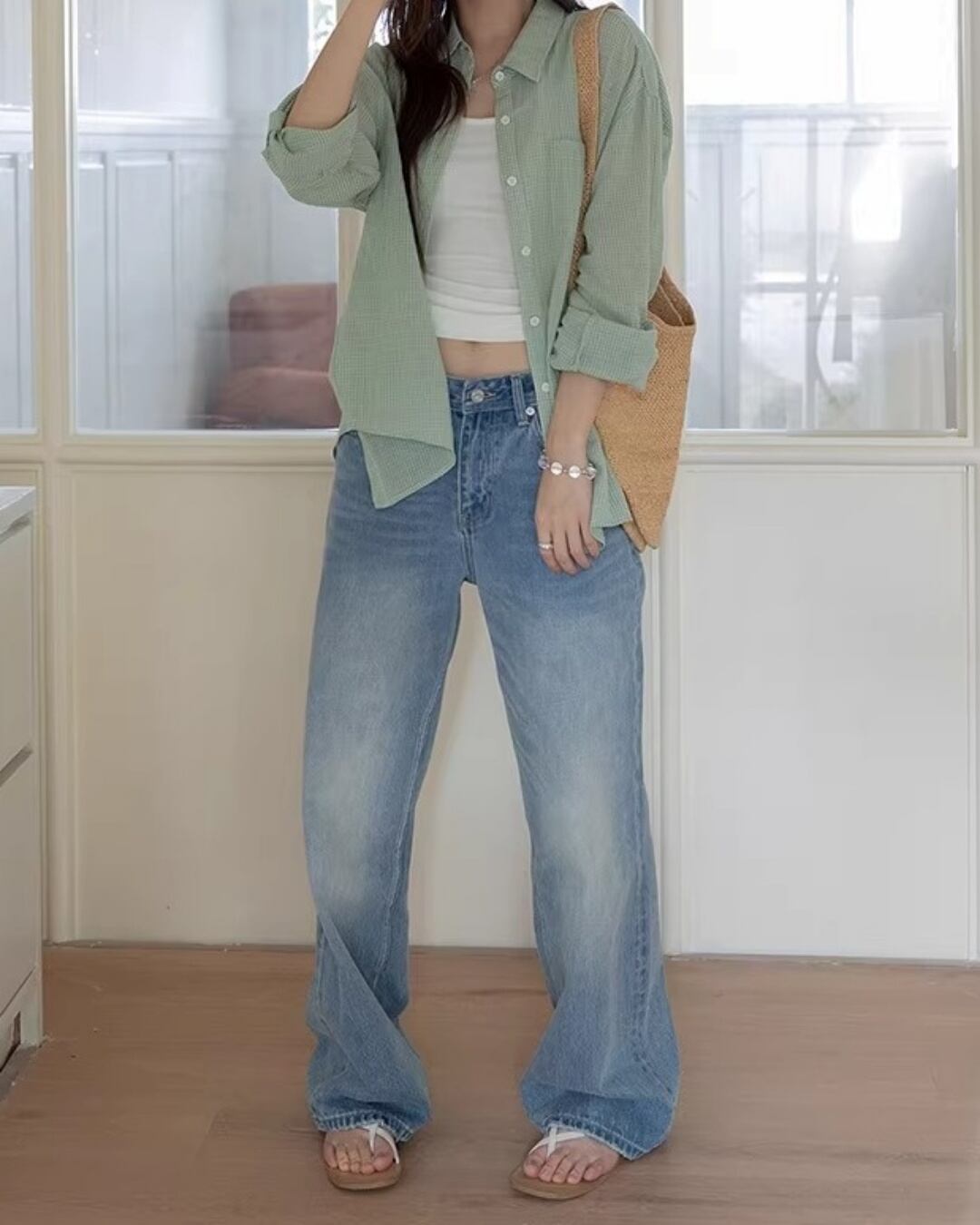 主張しすぎない細かなチェック柄は、カジュアルなデニムからきれいめのスラックスまで幅広くマッチ。