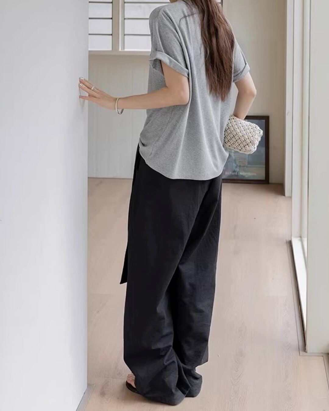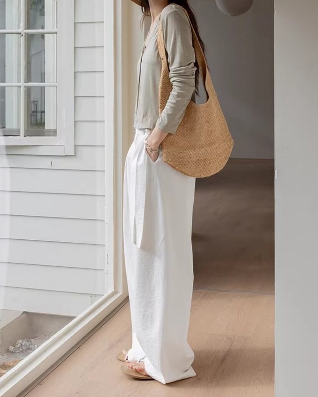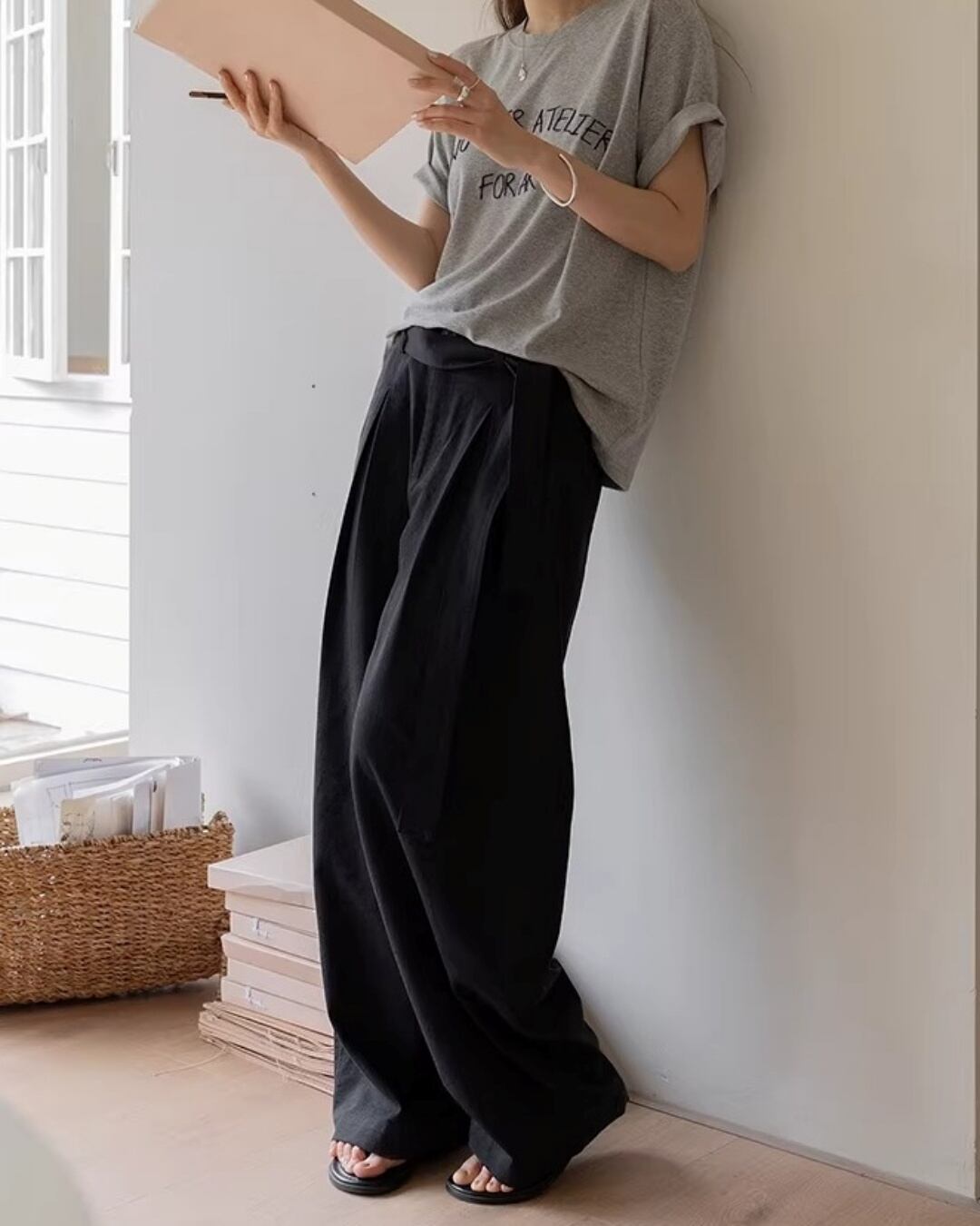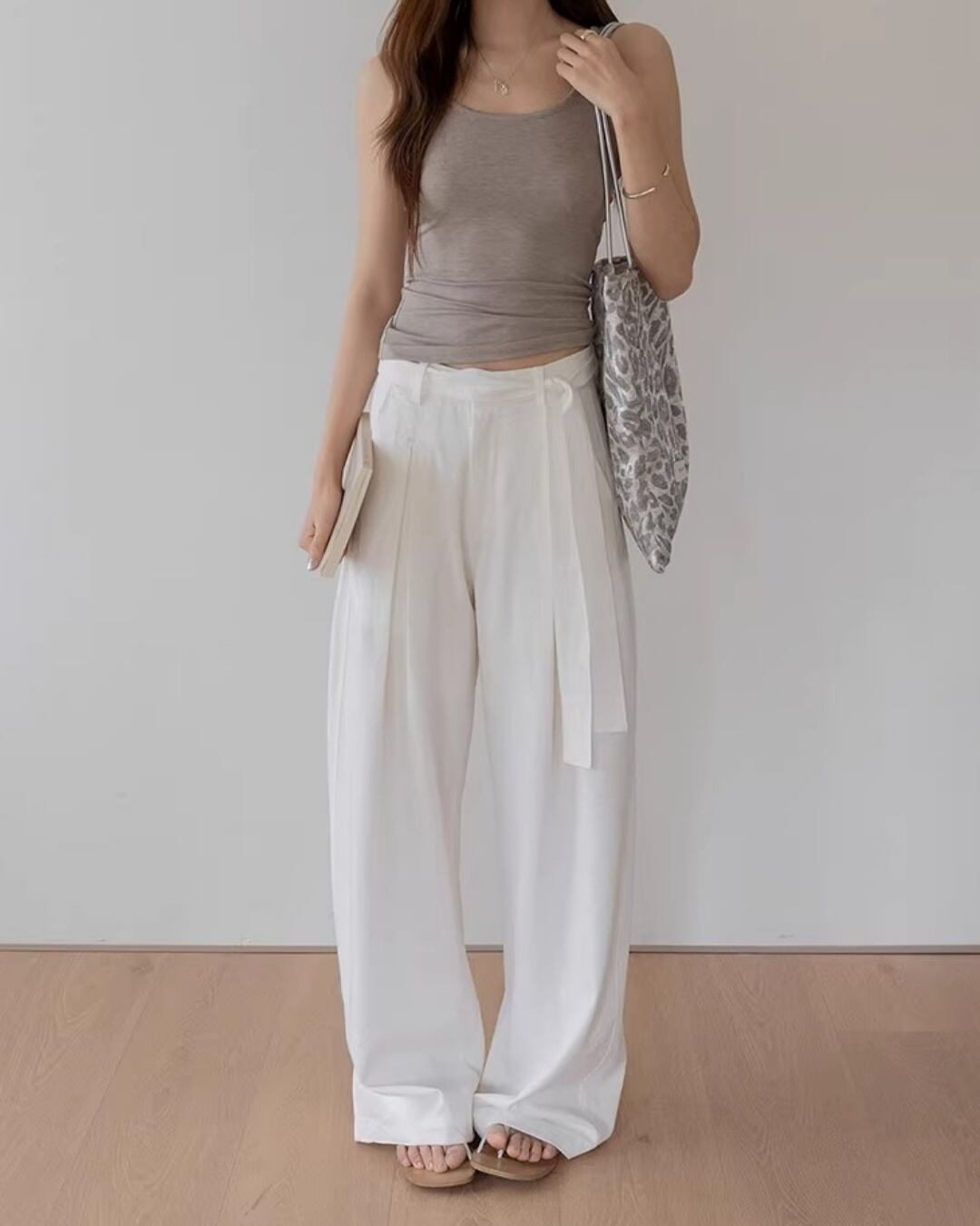 ベルト付きでアレンジを楽しめるワイドレッグパンツ。