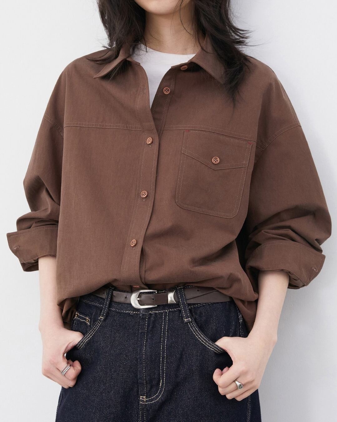 ヴィンテージ調の絶妙な色味とフォルムが魅力的な長袖シャツ。