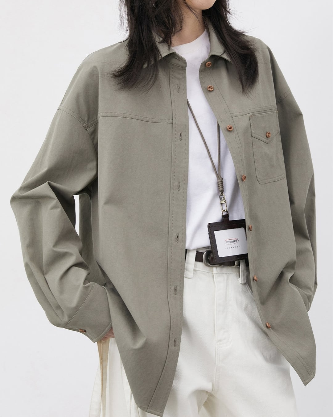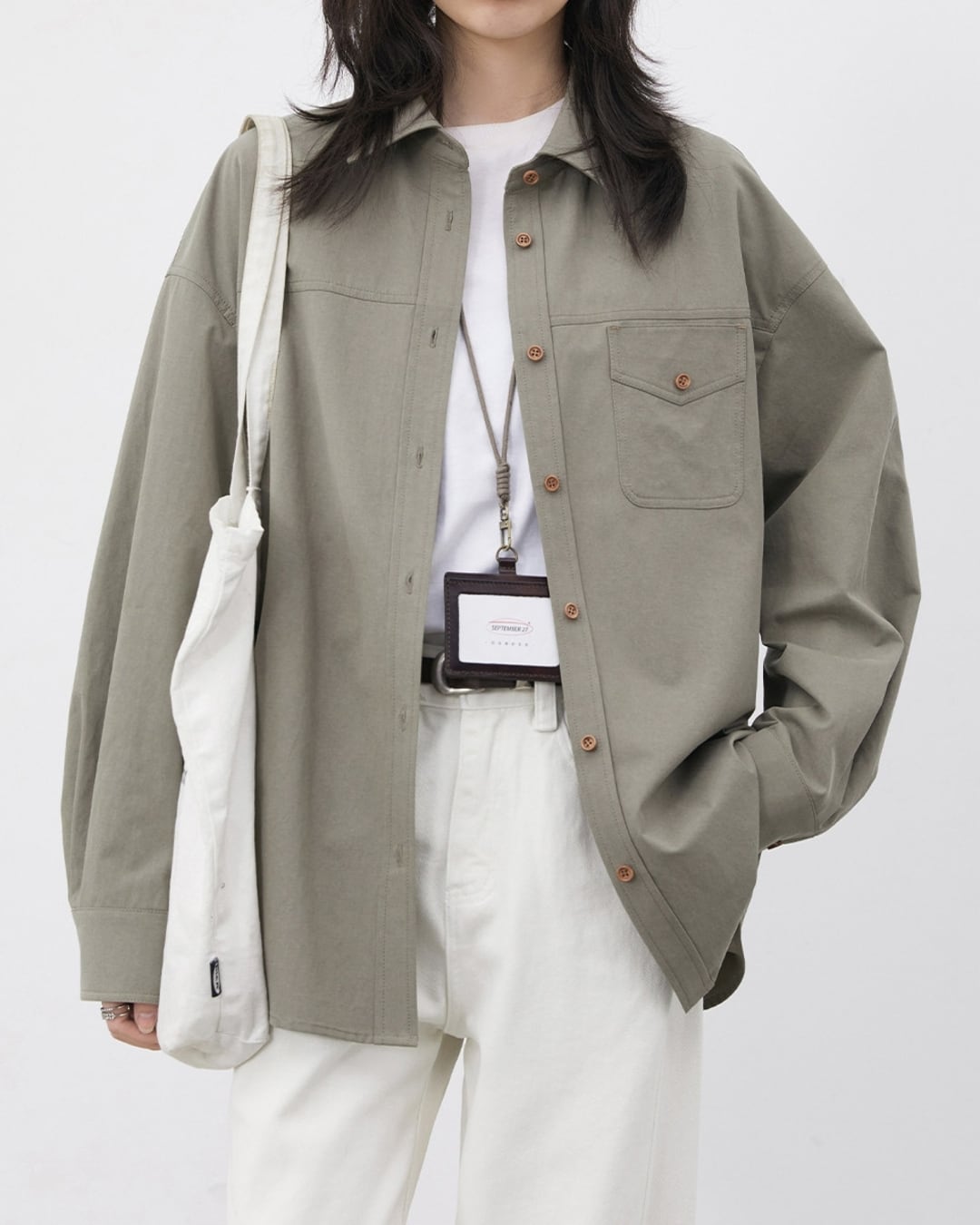 メンズライクなオーバーサイズで、カジュアルながらも洗練された印象を与えます。