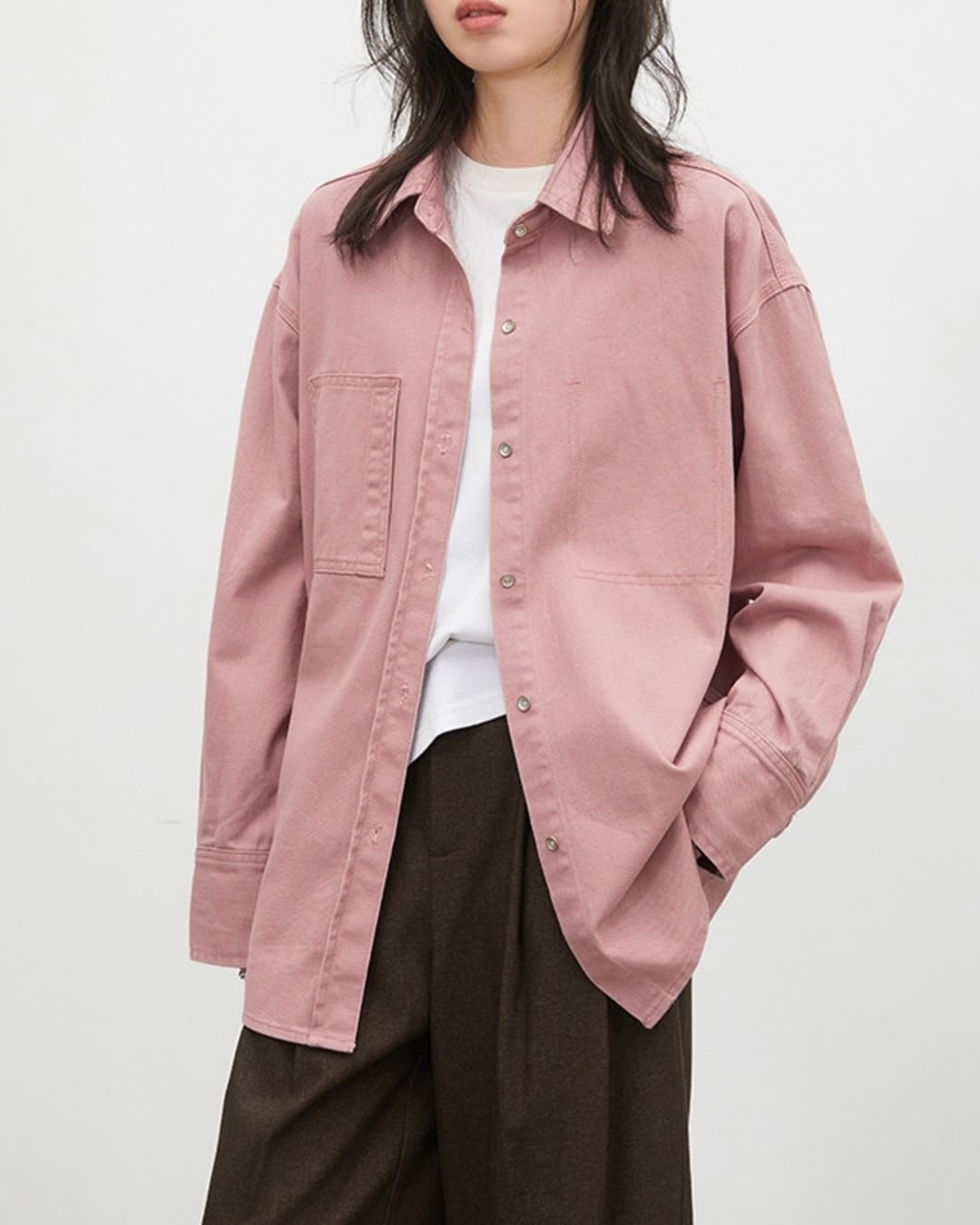 メンズライクなオーバーサイズは、カジュアルな装いにぴったりの一枚です。