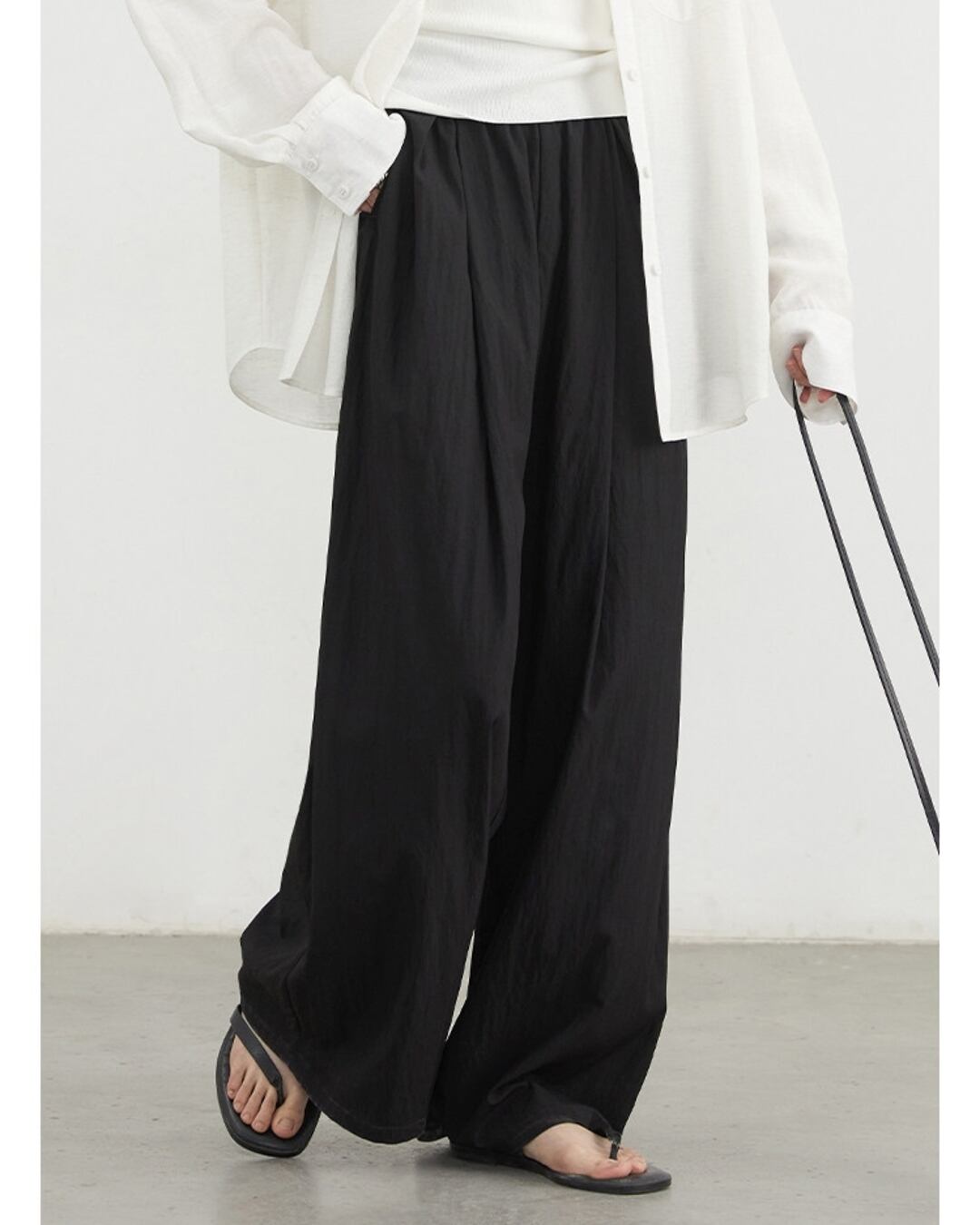 ゆったりとしたワイドレッグシルエットで、リラックス感のあるスタイルを演出するフルレングスパンツ。