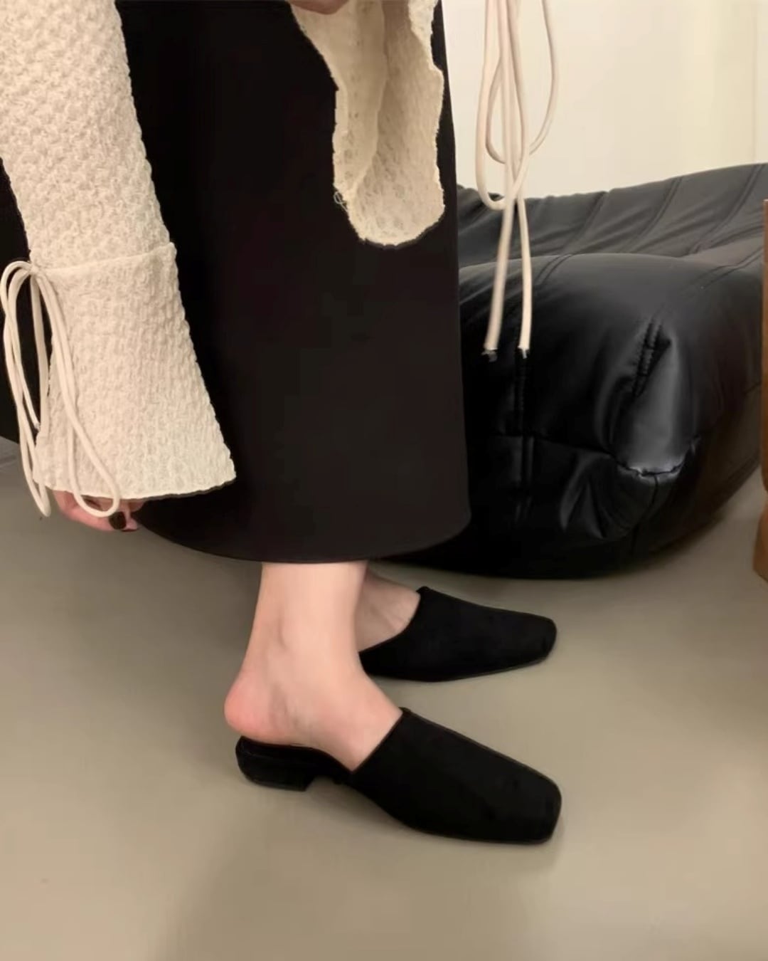 Square-toe flat Mules L0109