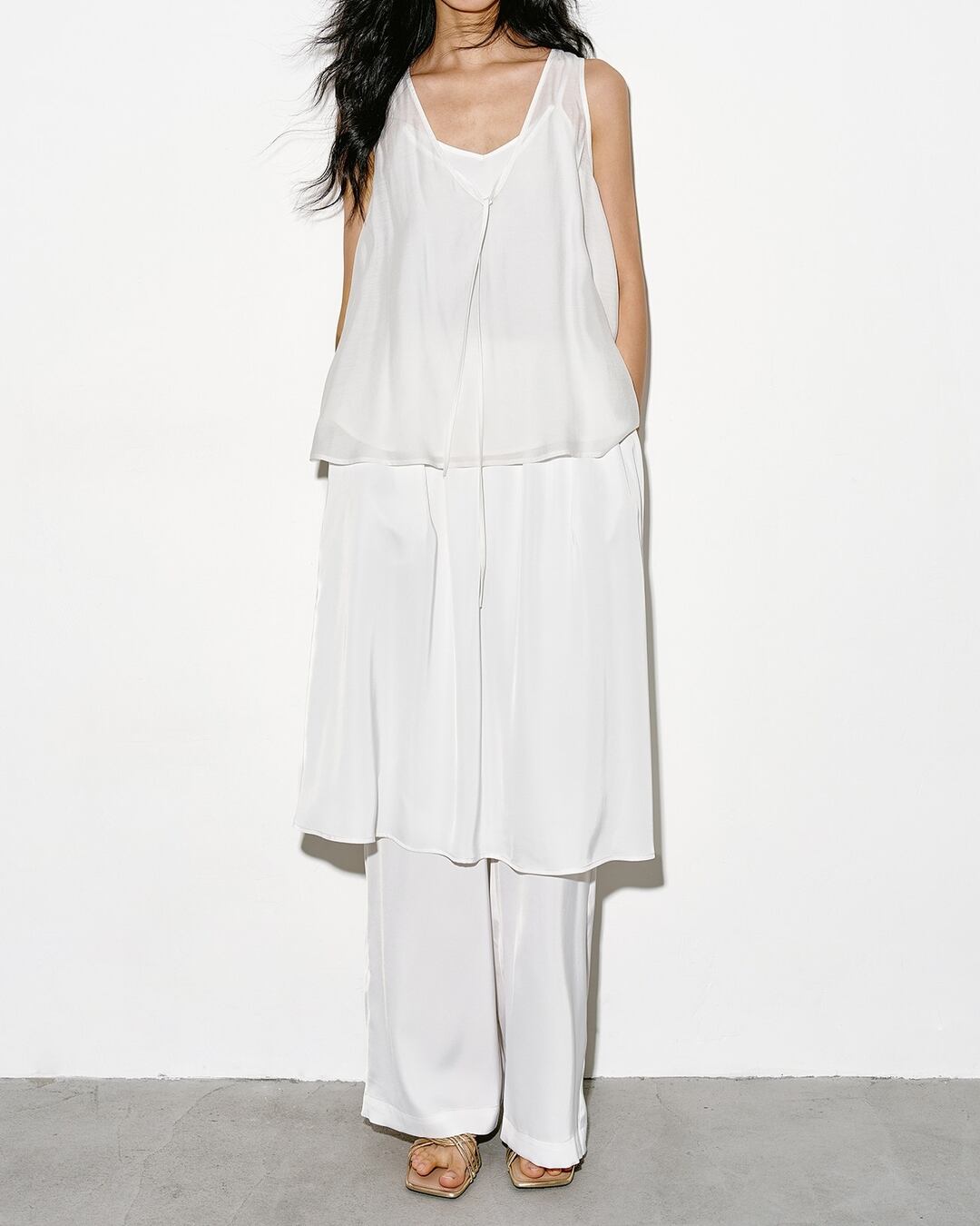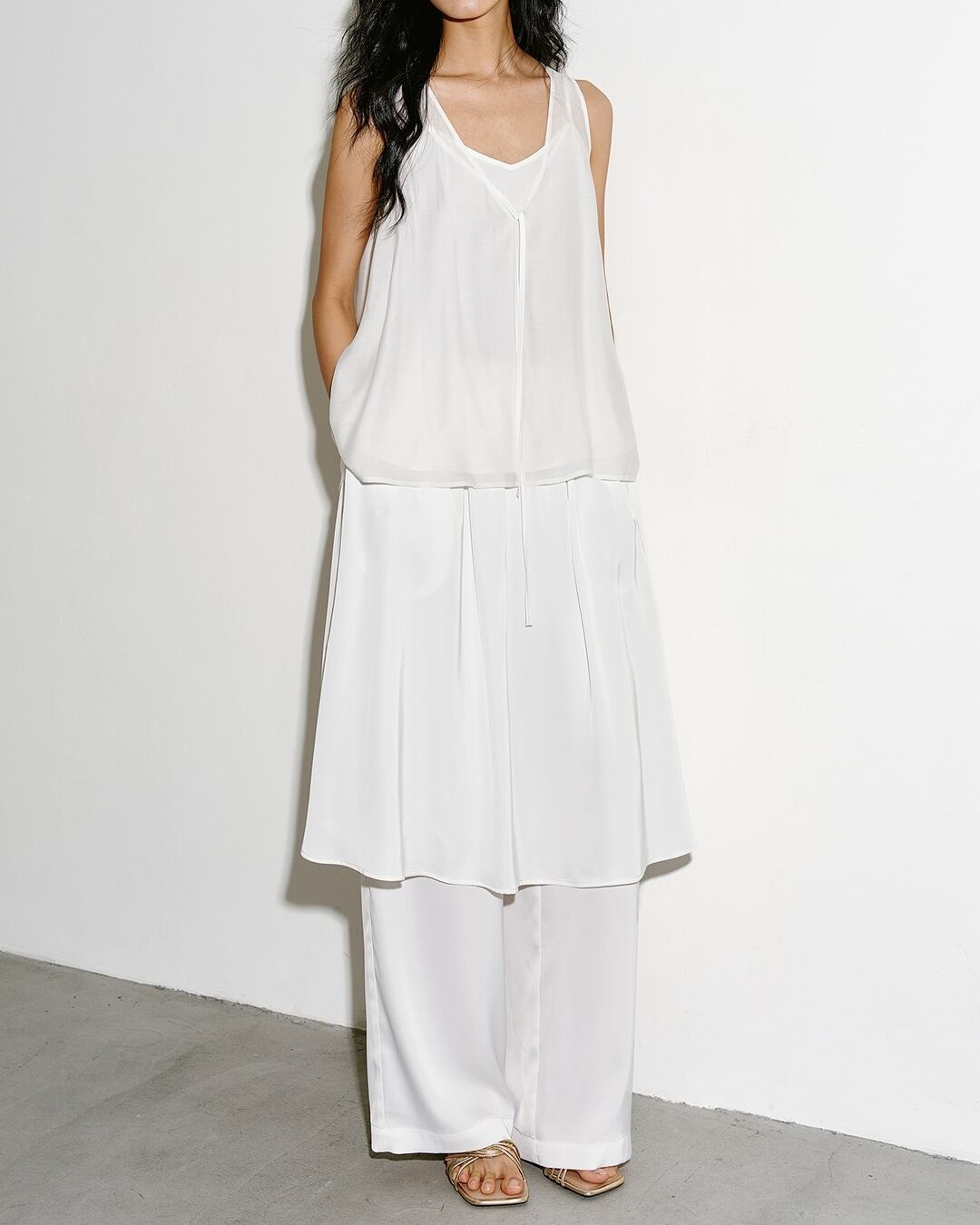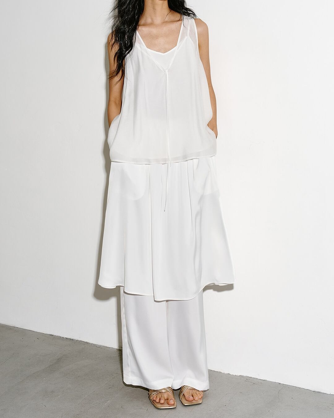 動きに合わせて揺れるシルエットが、コーディネートに軽やかさをプラスします。