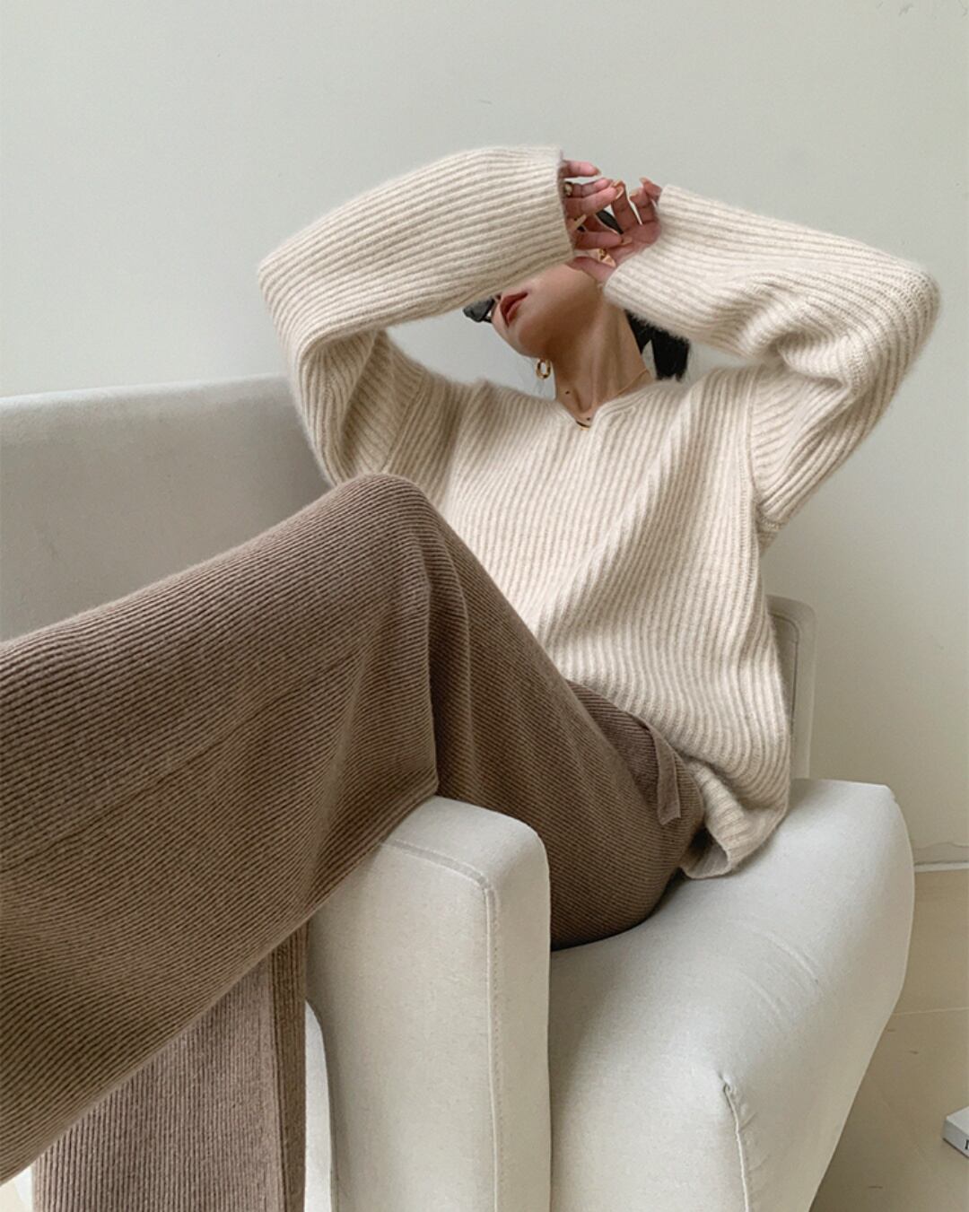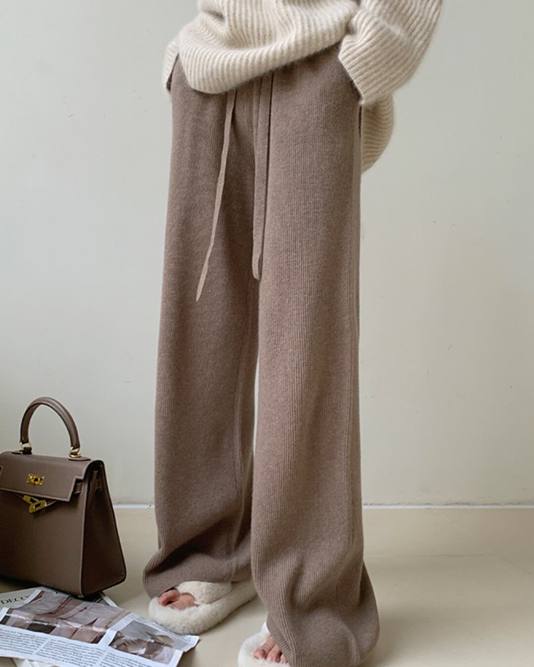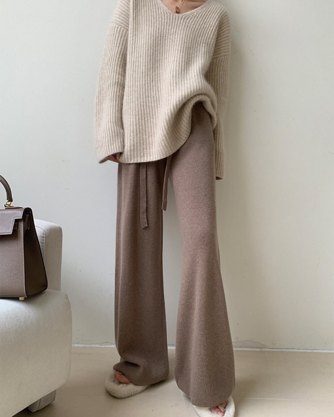 ハイウエストでウェストをきれいに引き締めてくれるワイドレッグロングパンツ。