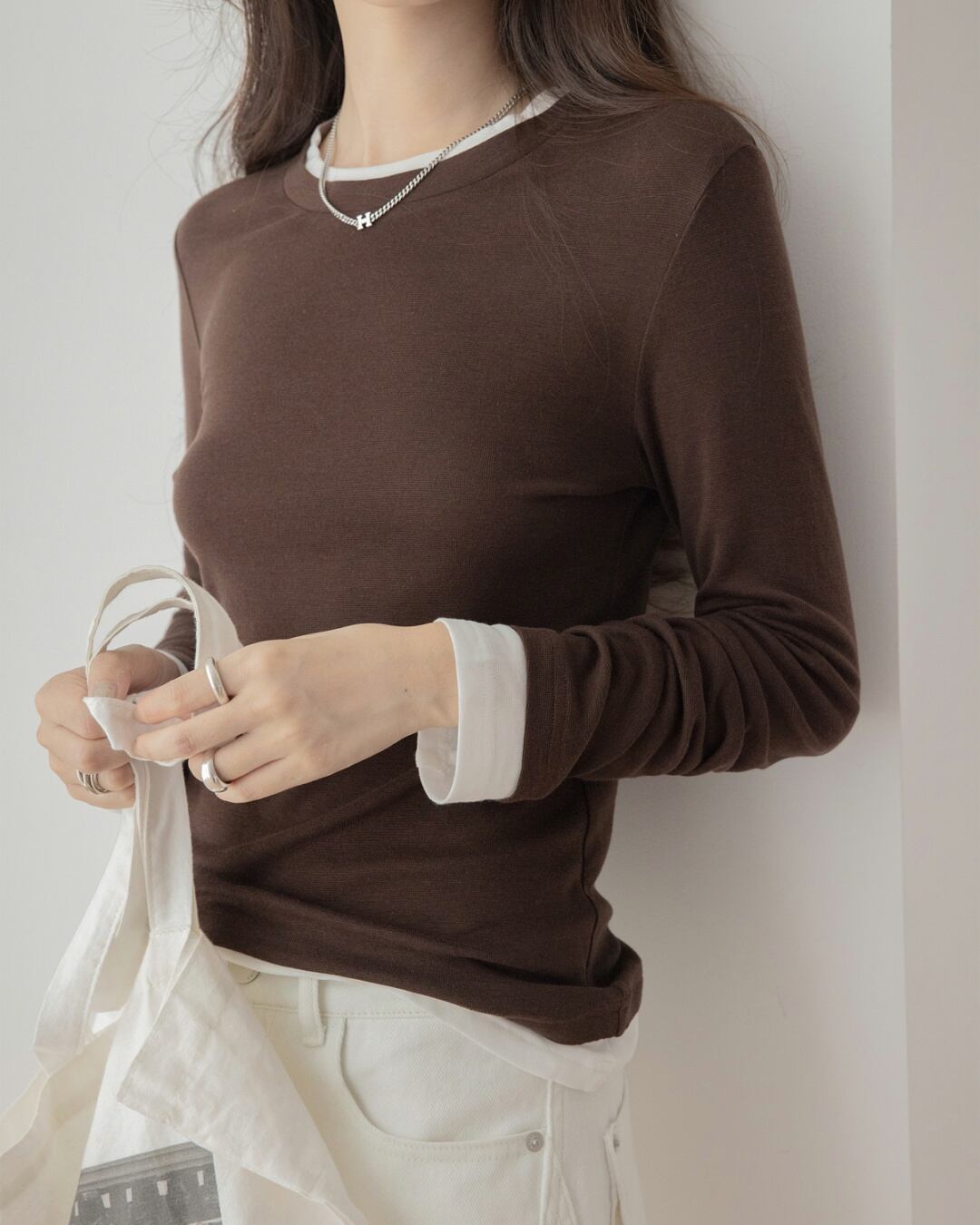 一見、インナーとトップスが重なっているようなデザインがポイントです。
