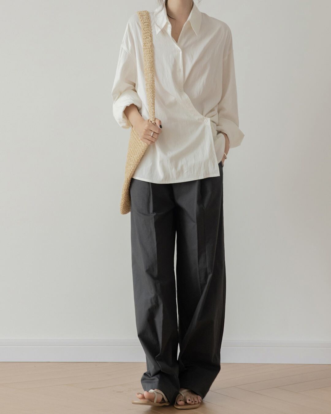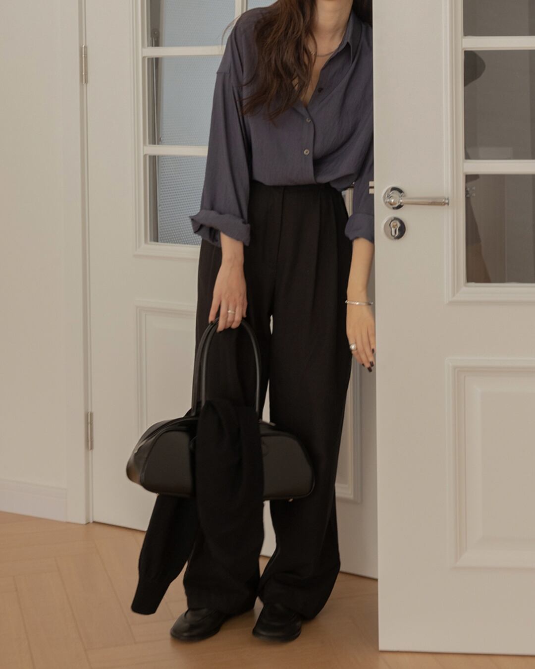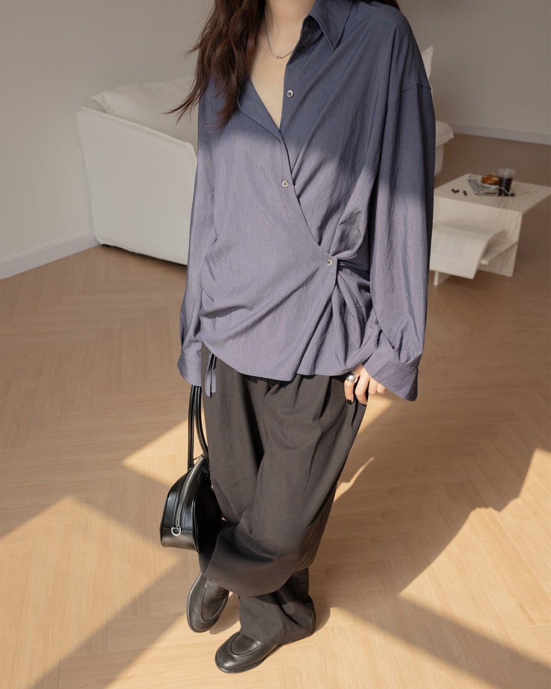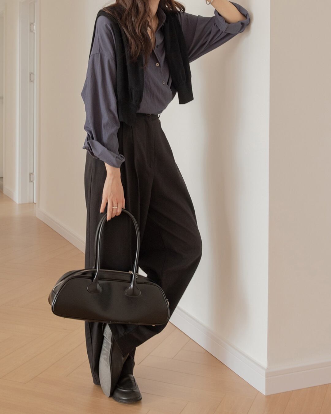 シンプルなデザインは、どんなスタイルにも合わせやすく、着回しの利くアイテムとなっています。