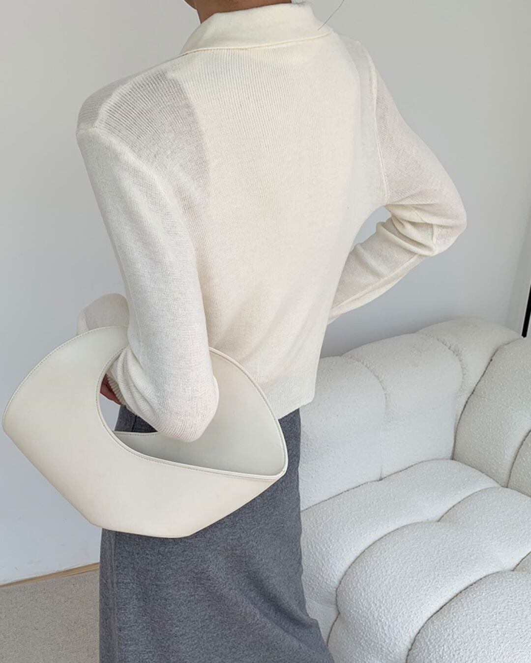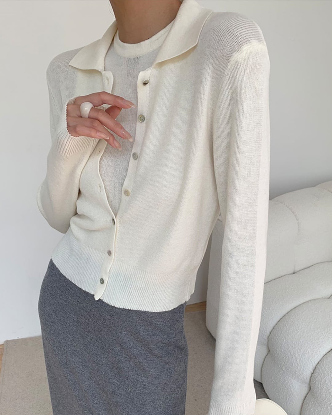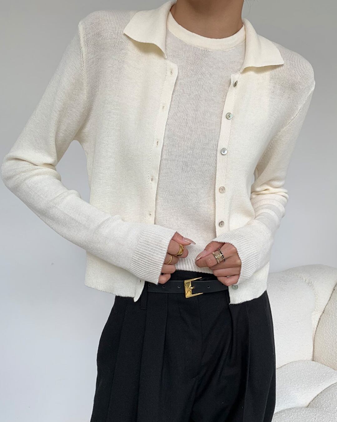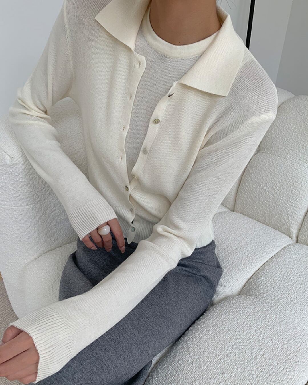 柔らかなニット素材とシャープな襟がこだわりの一品です。