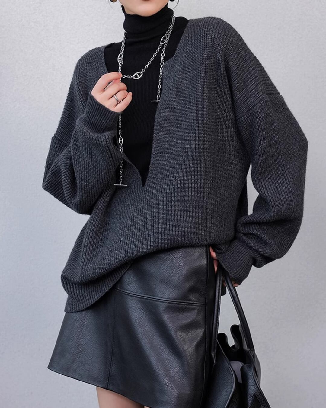 Deep v neck loose knit Sweater T20163