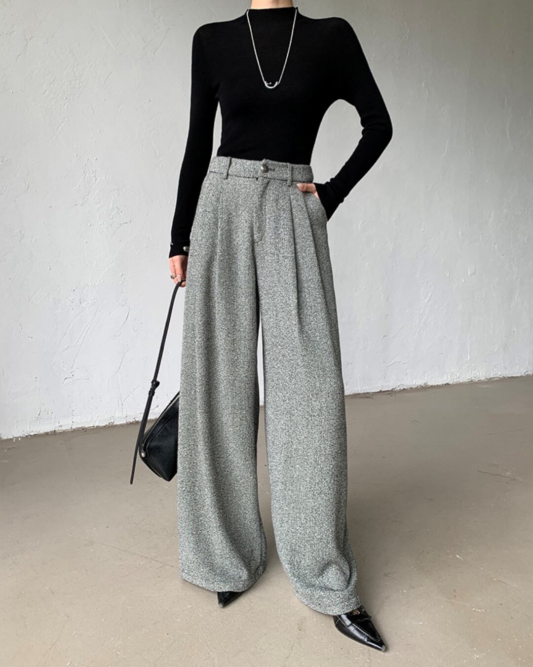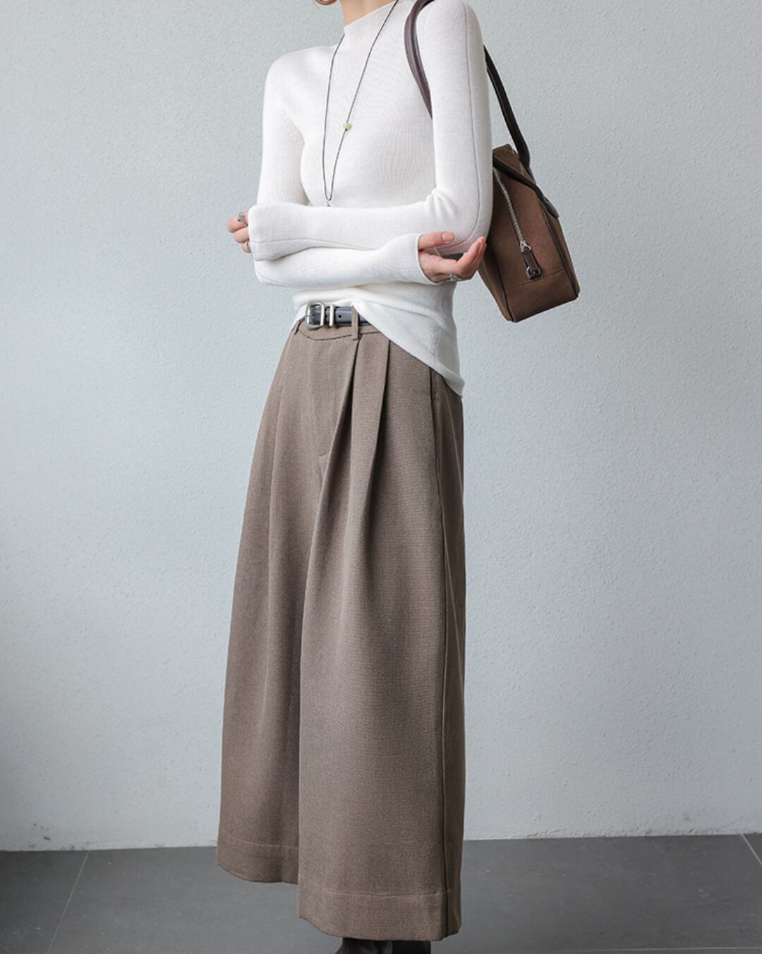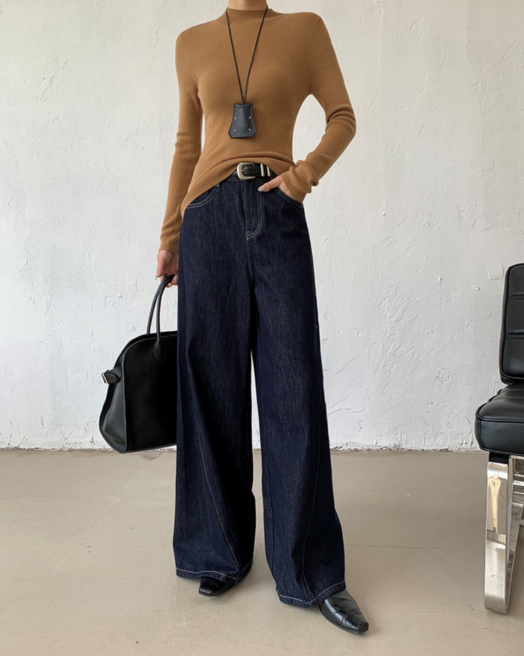 ハーフタートルネックのデザインは、首元をさりげなく温め、上品な印象を与えます。