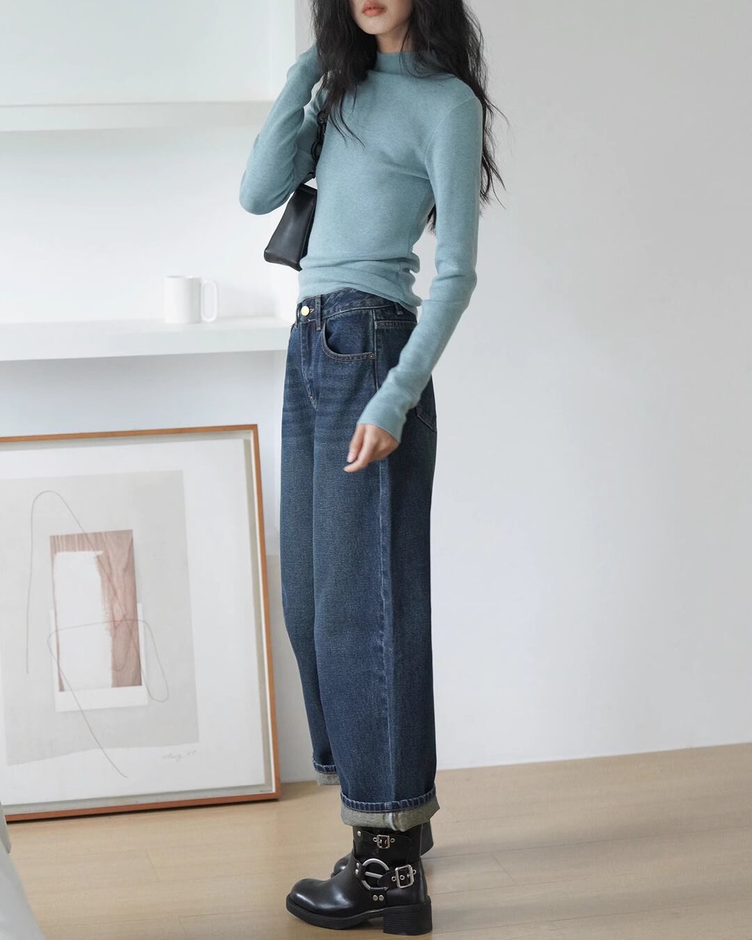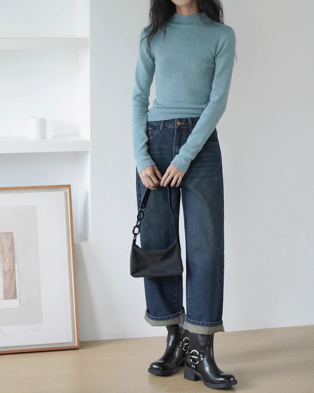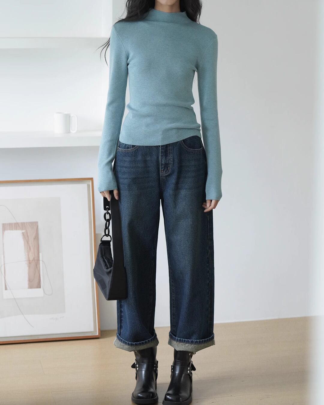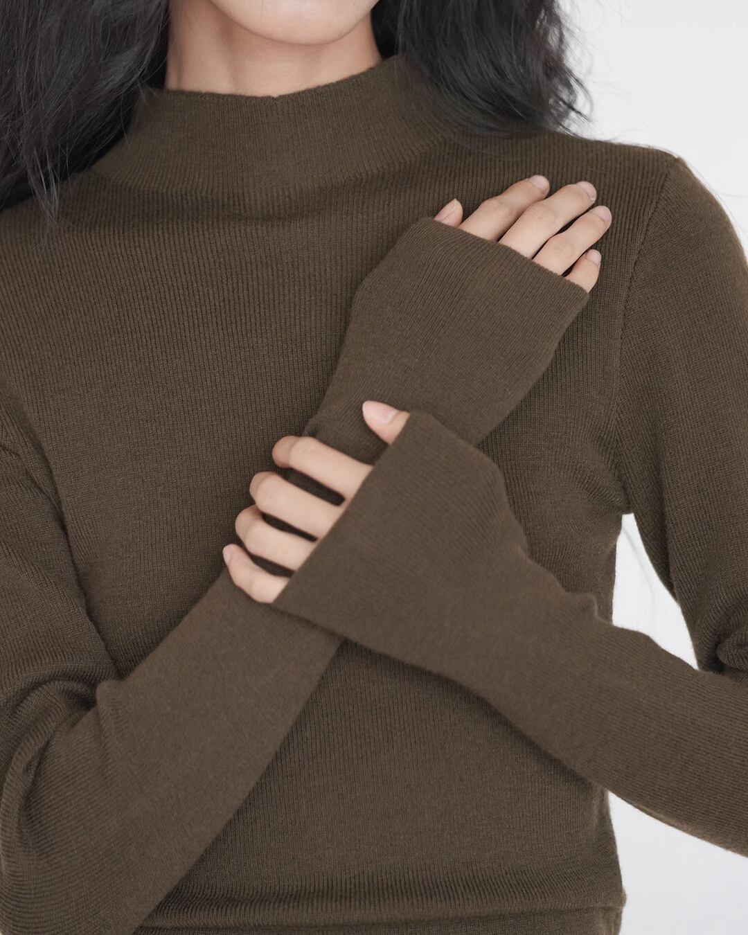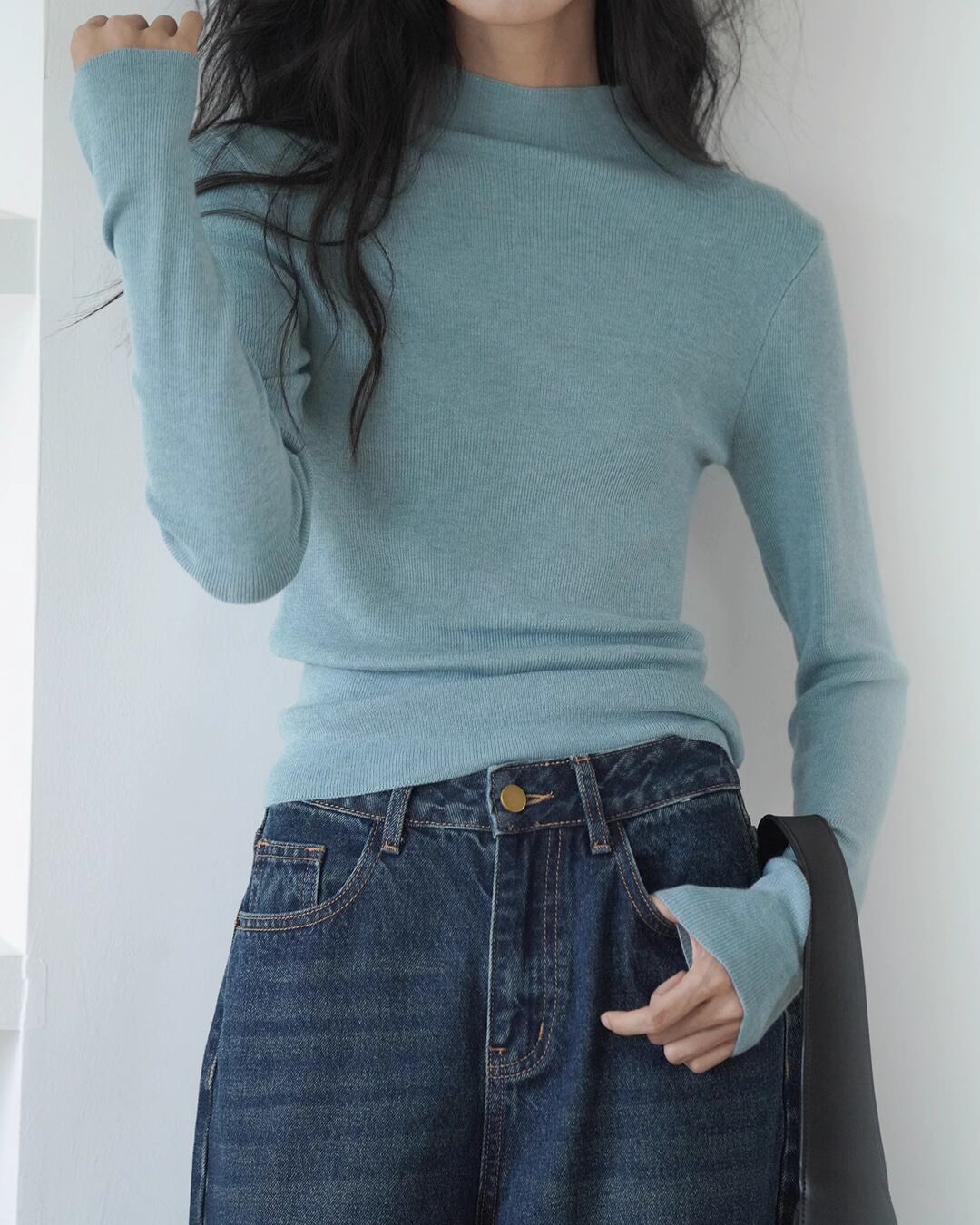 ベーシックなデザインで着まわしやすいハイネックニット。