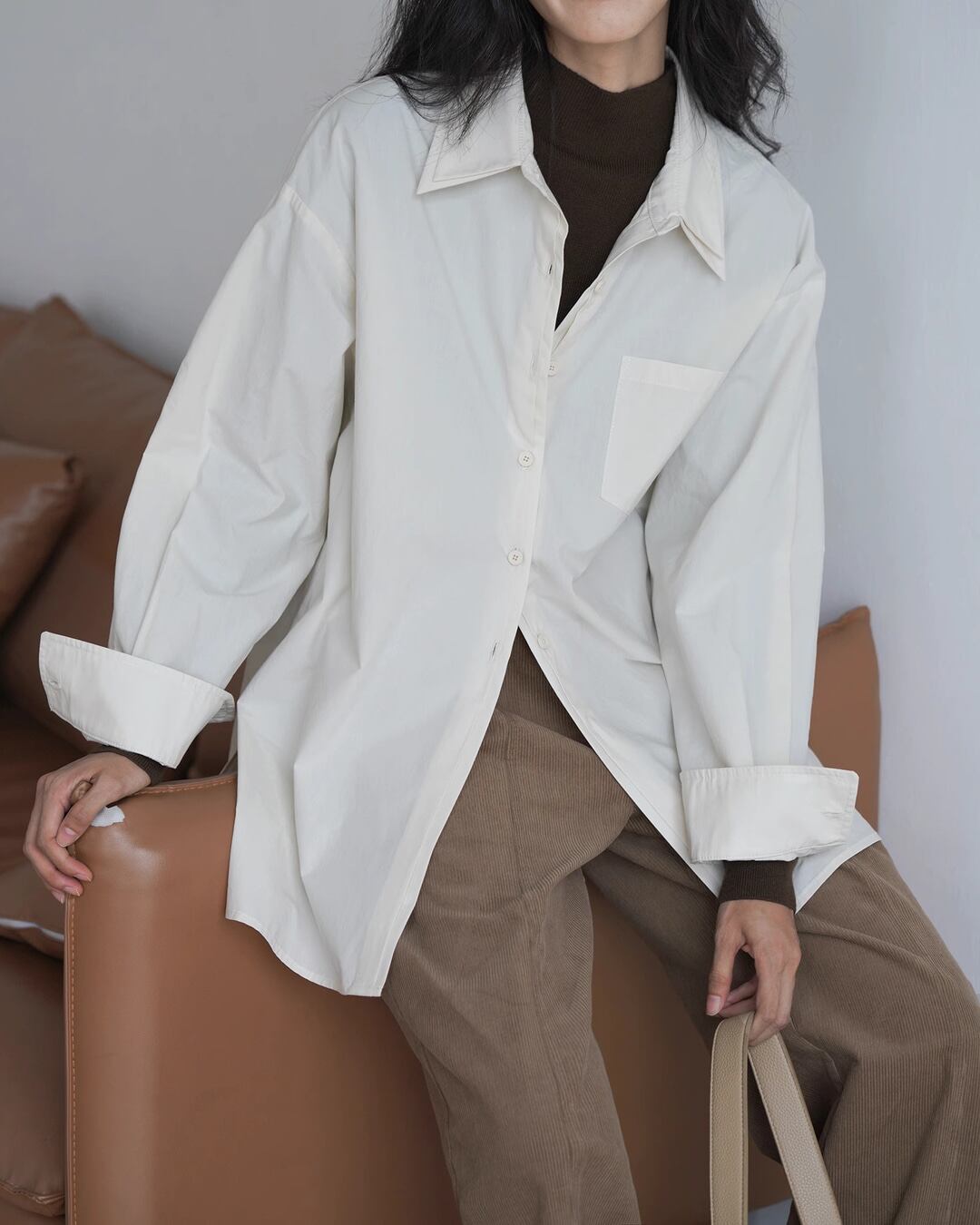 きれいめなジャケットスタイルや、サロペットやジャンスカのインナーにもぴったりの1着です。