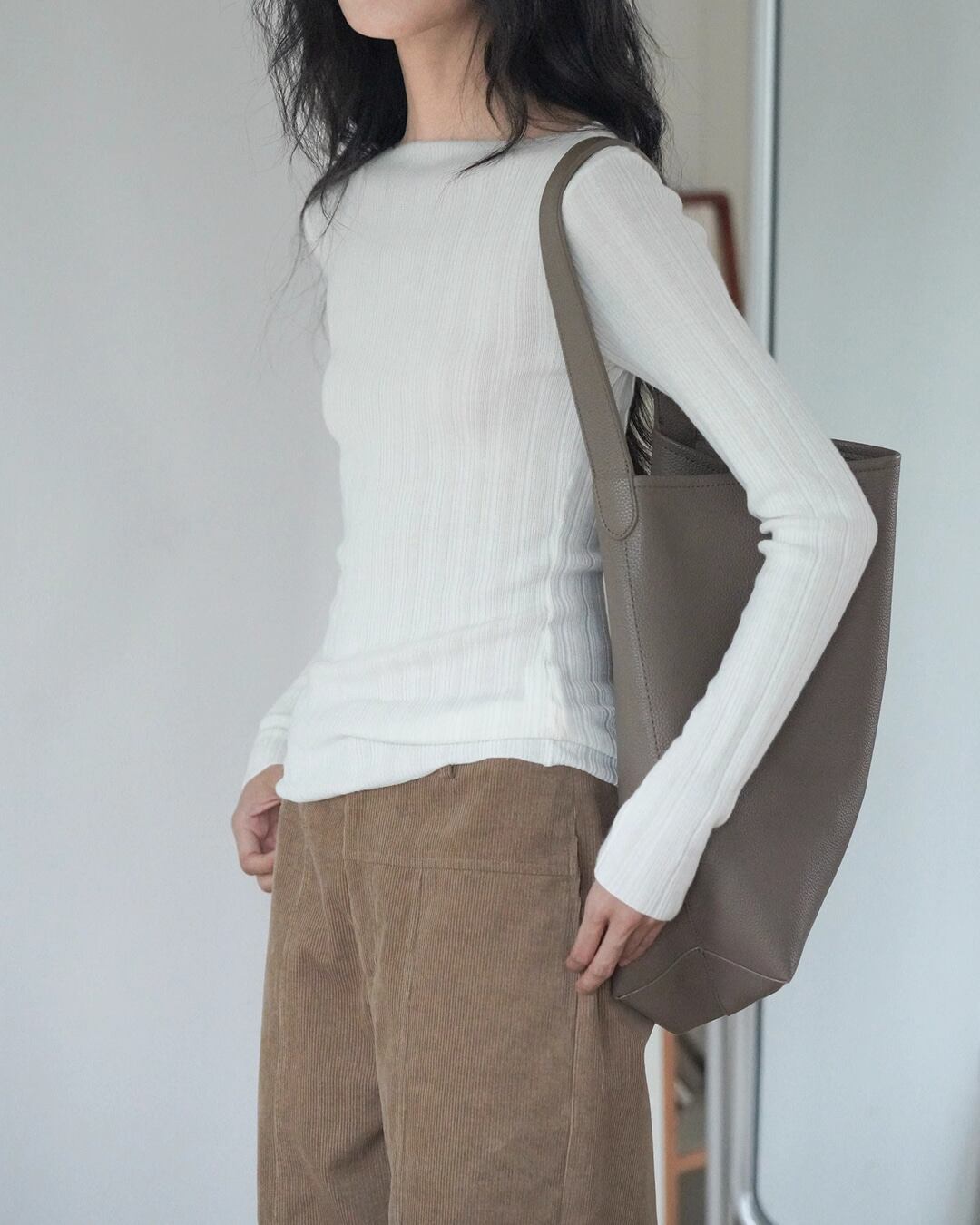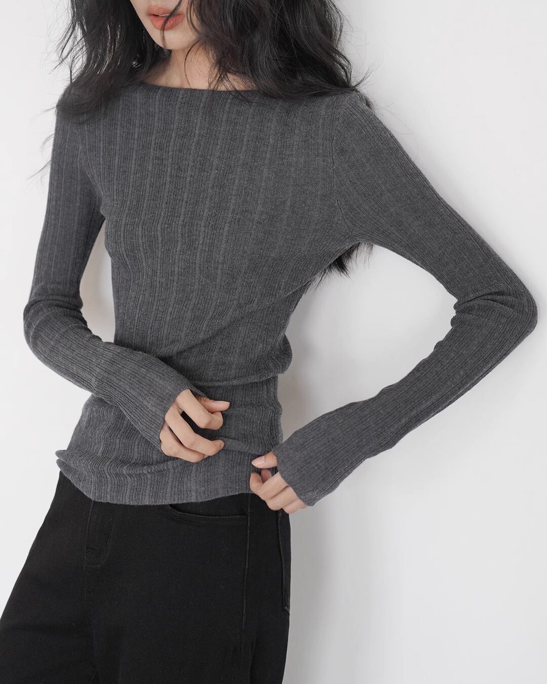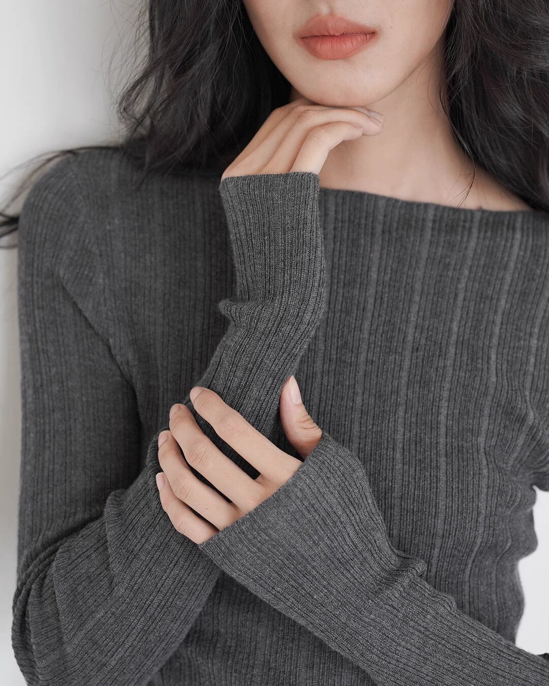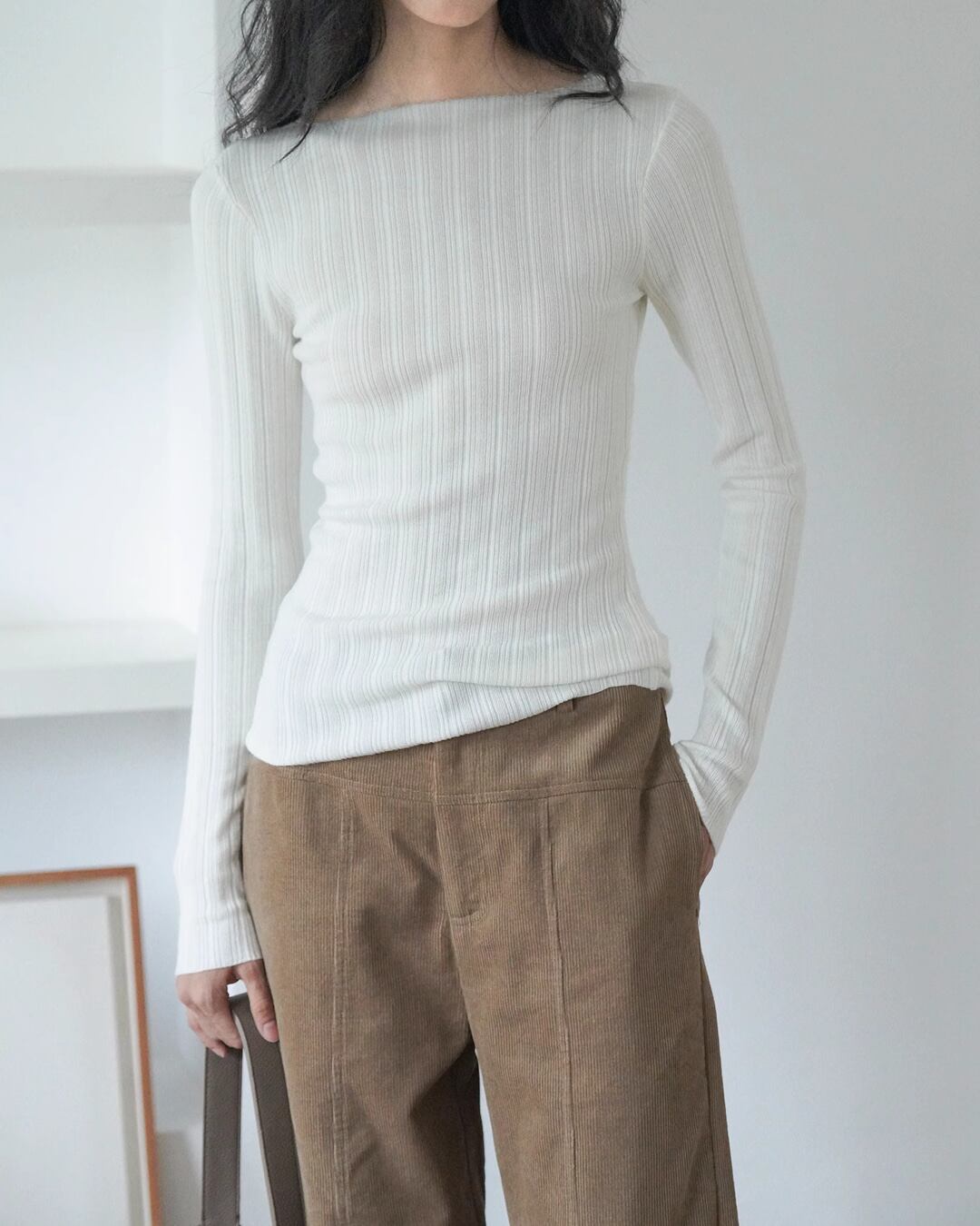 首回りをすっきりきれいに魅せてくれるボートネックニット。