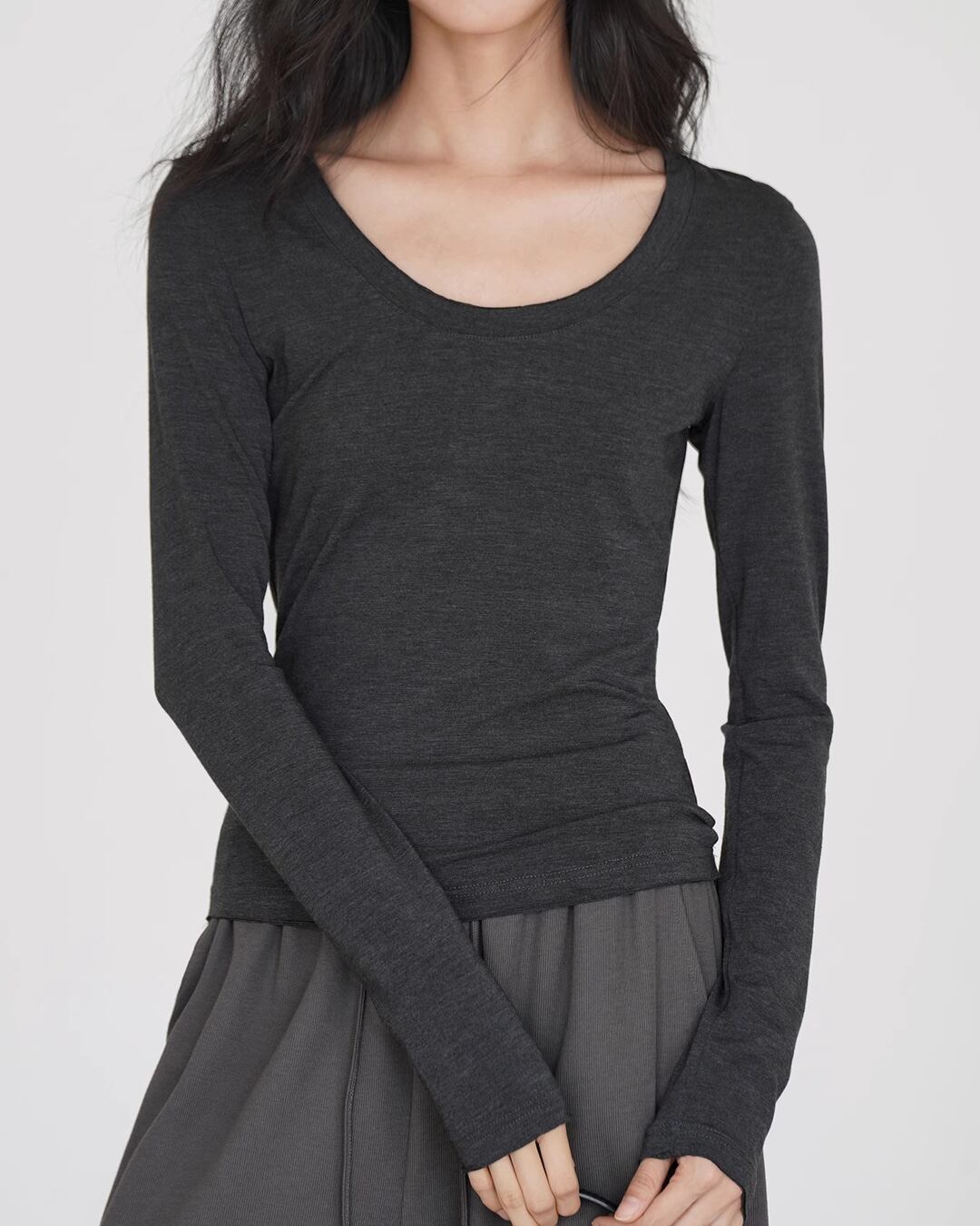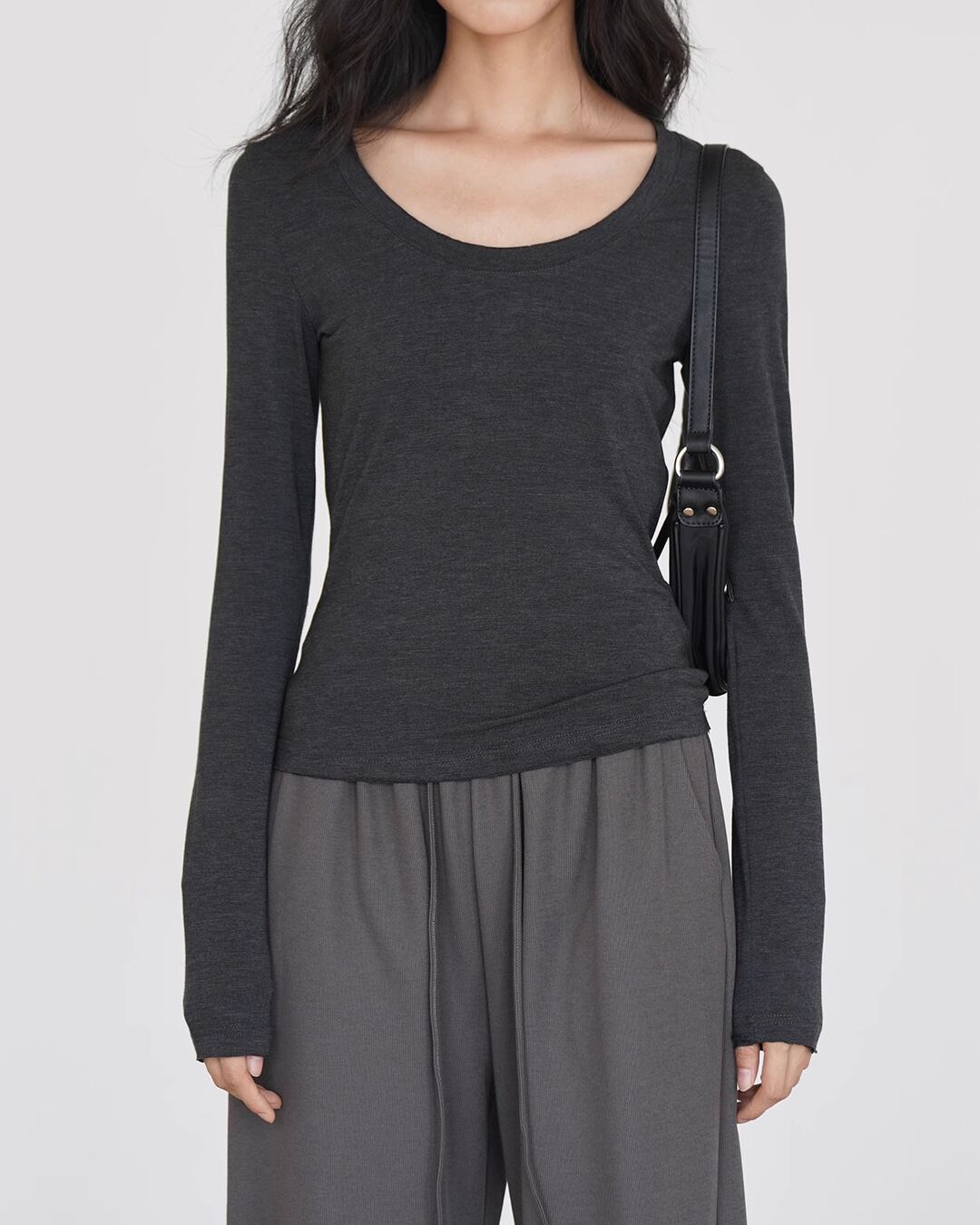 ネックラインが広めで、顔周りをすっきり見せてくれます。