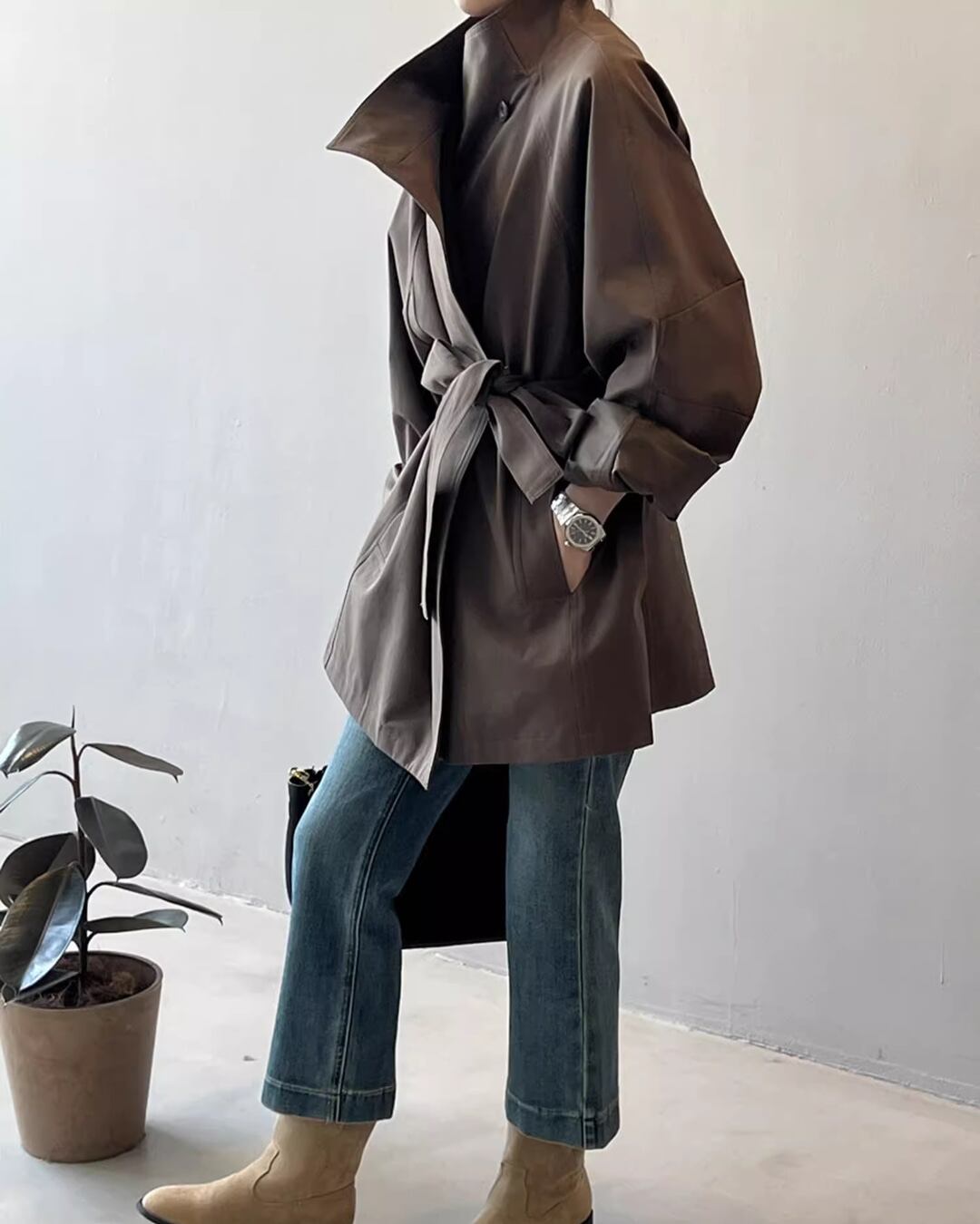 さらっと羽織るだけでサマになるスタンドカラーコート。