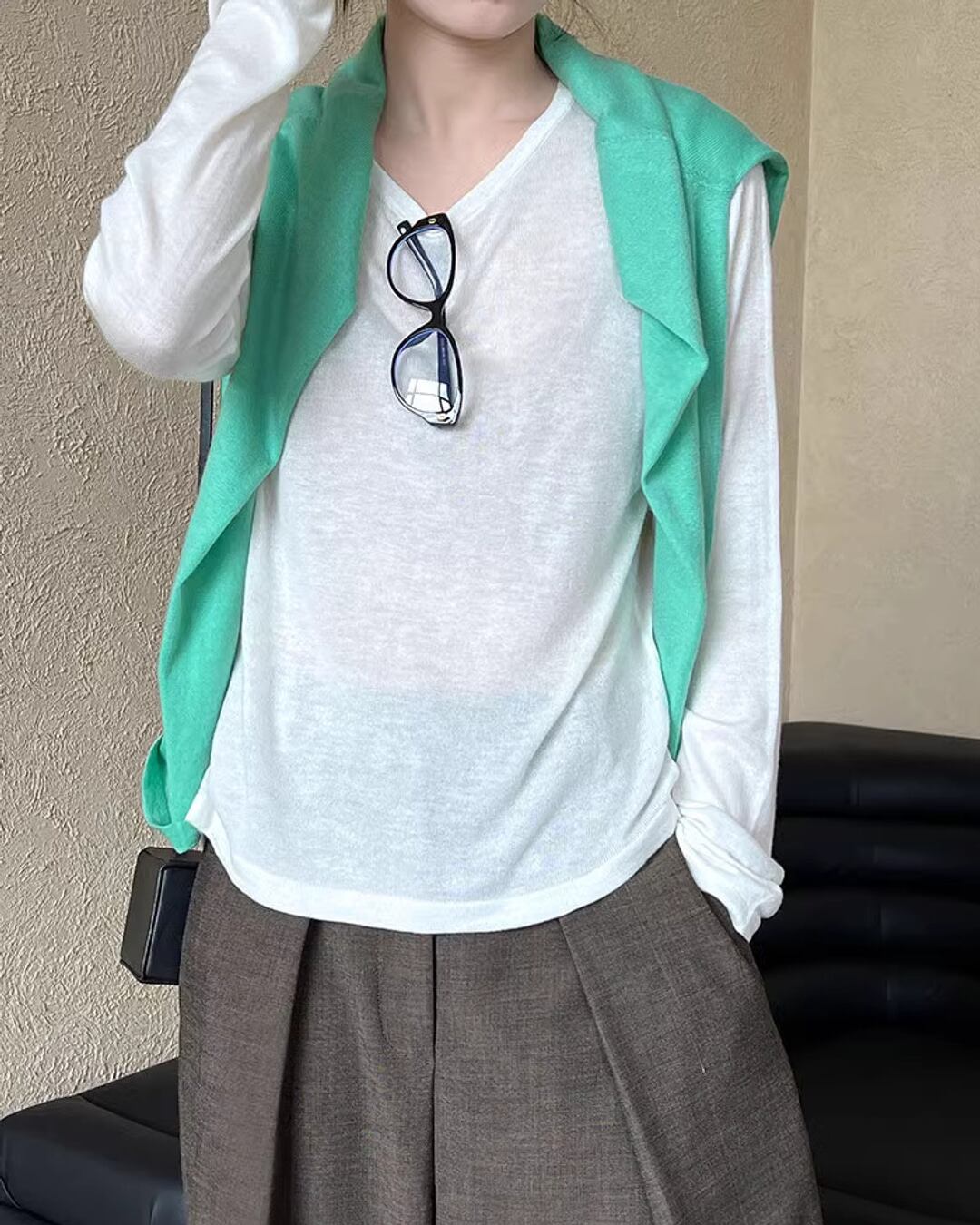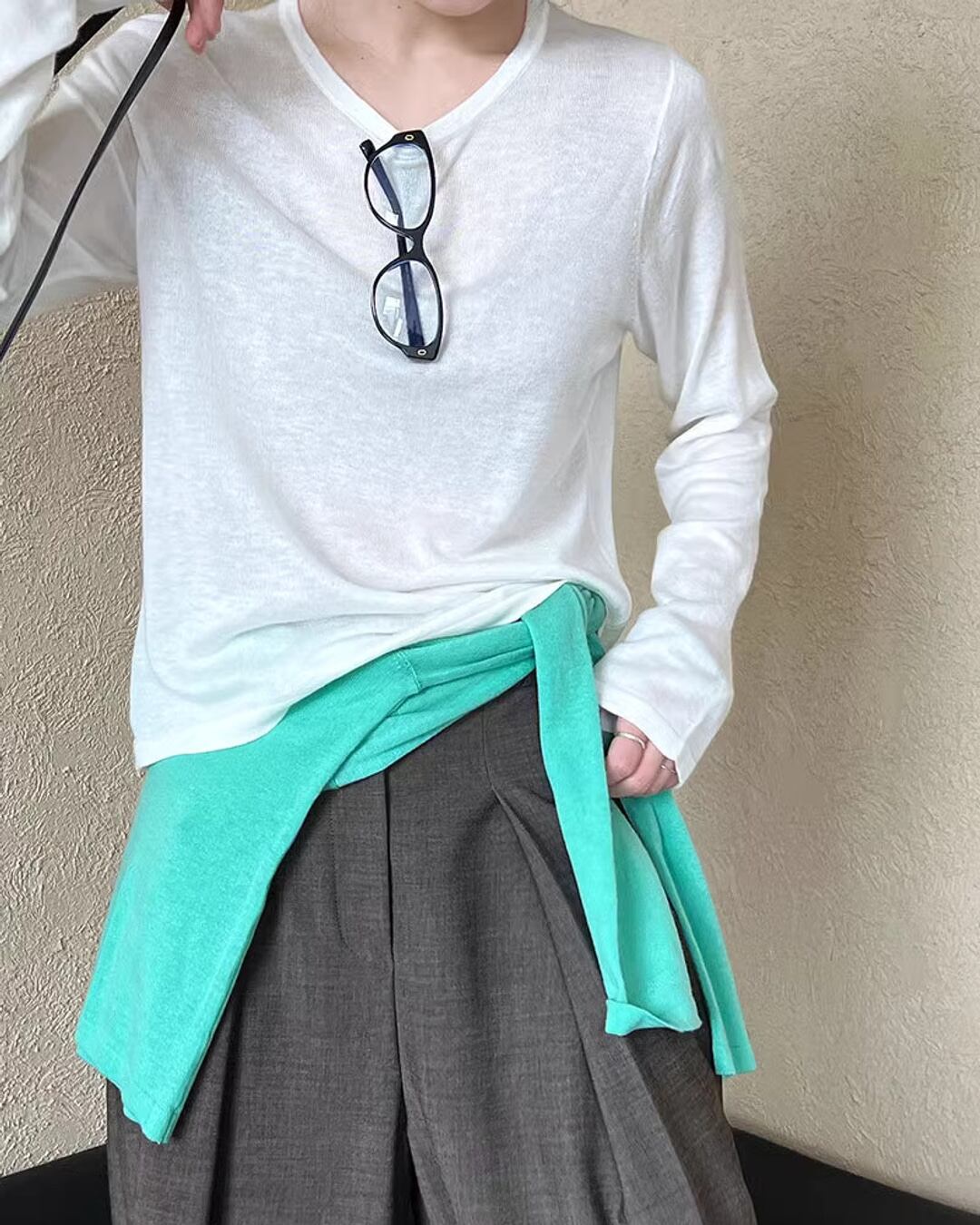 柄物トップスと組み合わせたり、首元や袖口からさりげなく覗かせたりと、様々な着こなしが楽しめます。