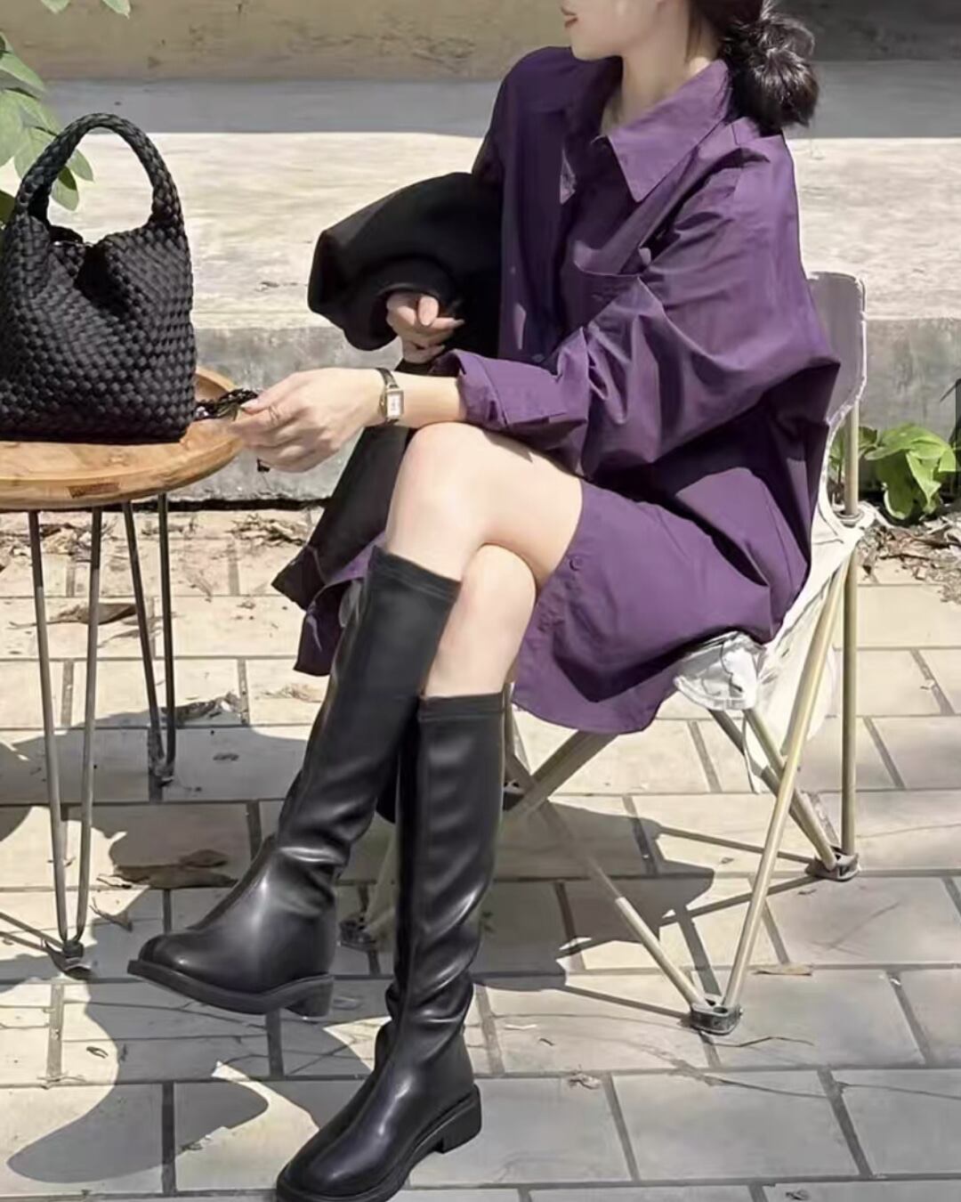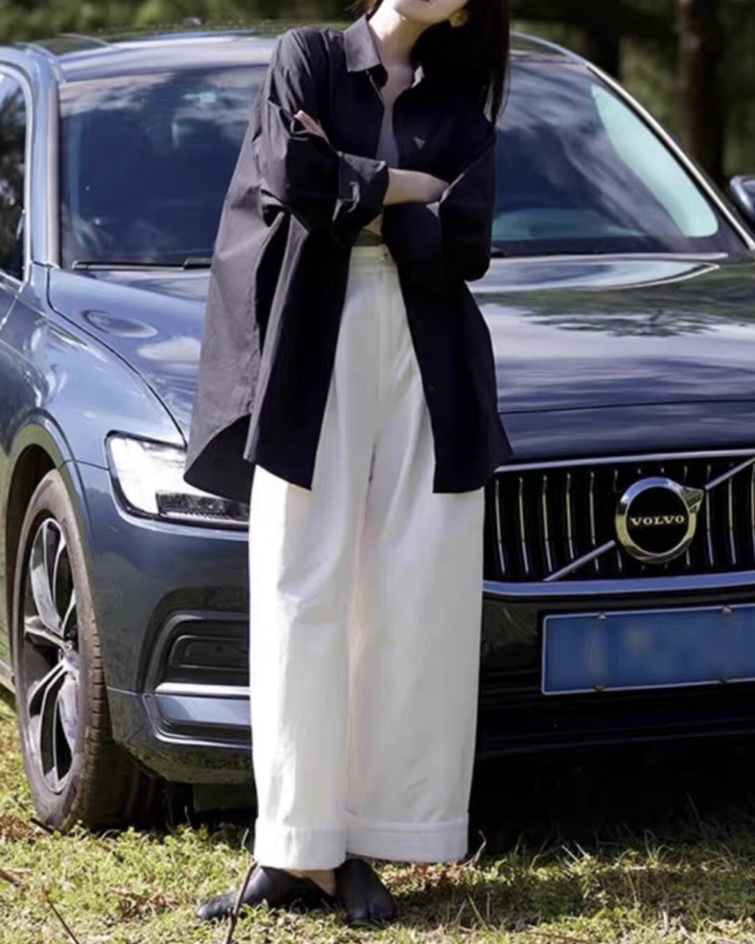 デニムやワイドパンツでカジュアルに合わせるのはもちろん、ショート丈のボトムスを合わせてワンピース風の着こなしもおすすめです。