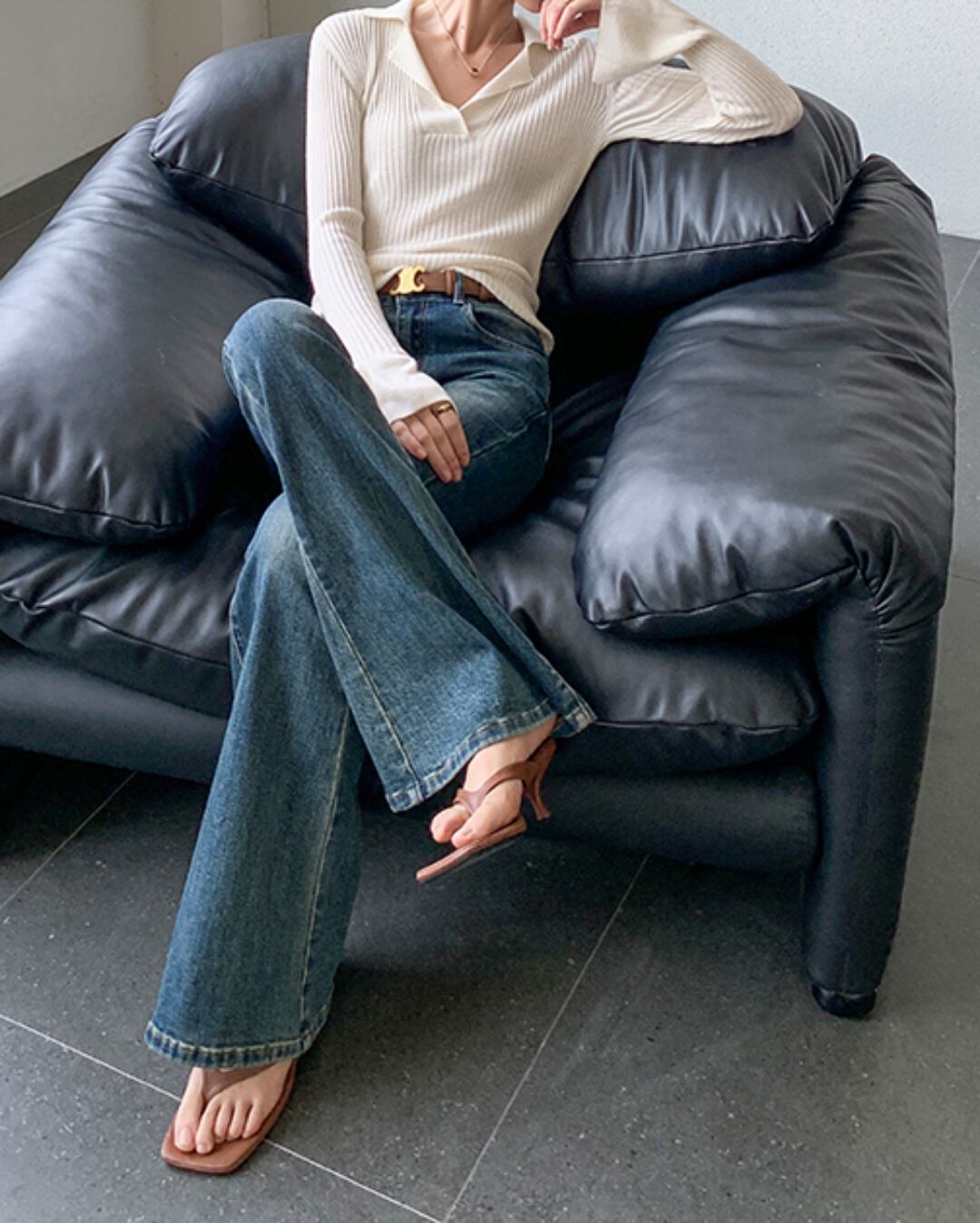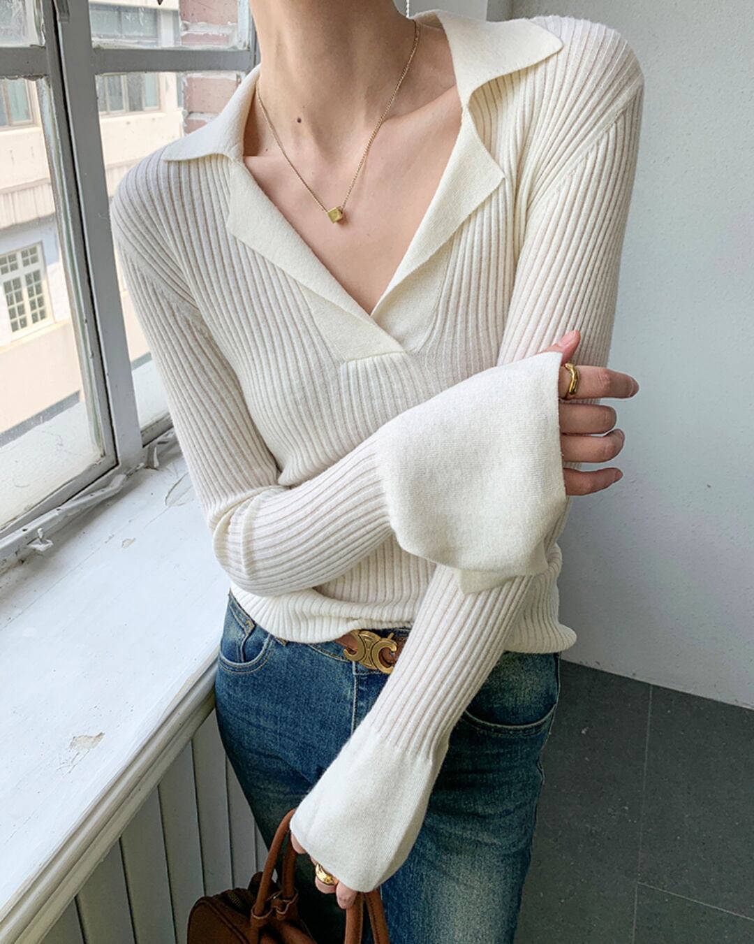 ボディラインを美しく引き立てる、Vネックデザインが特徴のロングスリーブスリムインナーセーター。