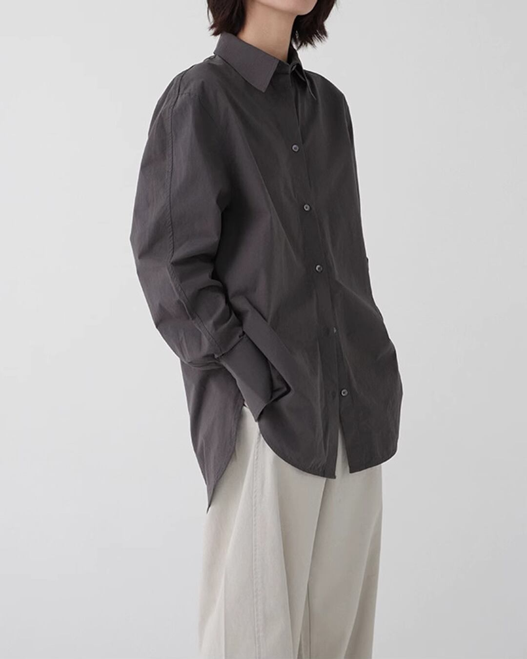 程よいハリ感できれいめにも合わせられるオーバーサイズシャツ。