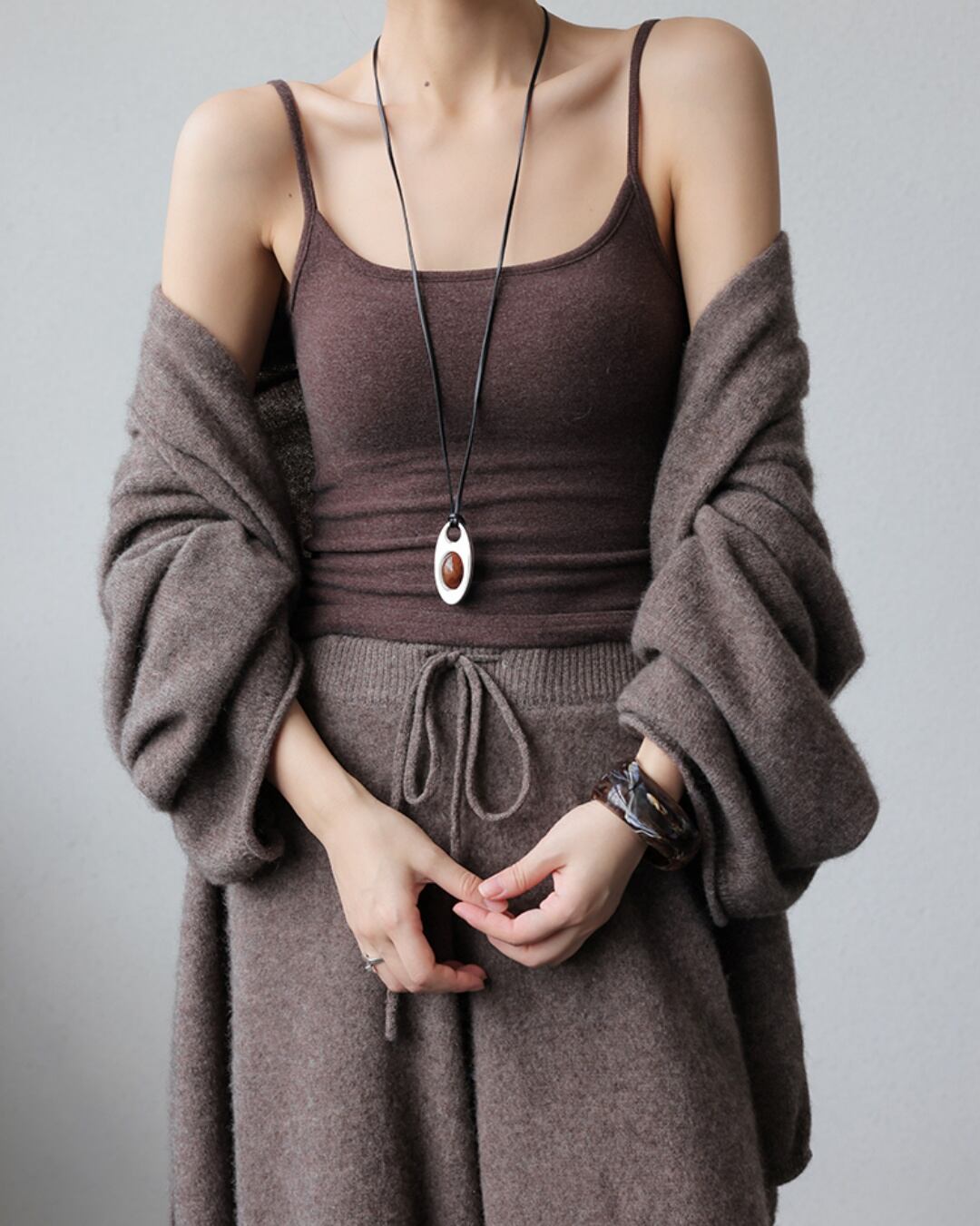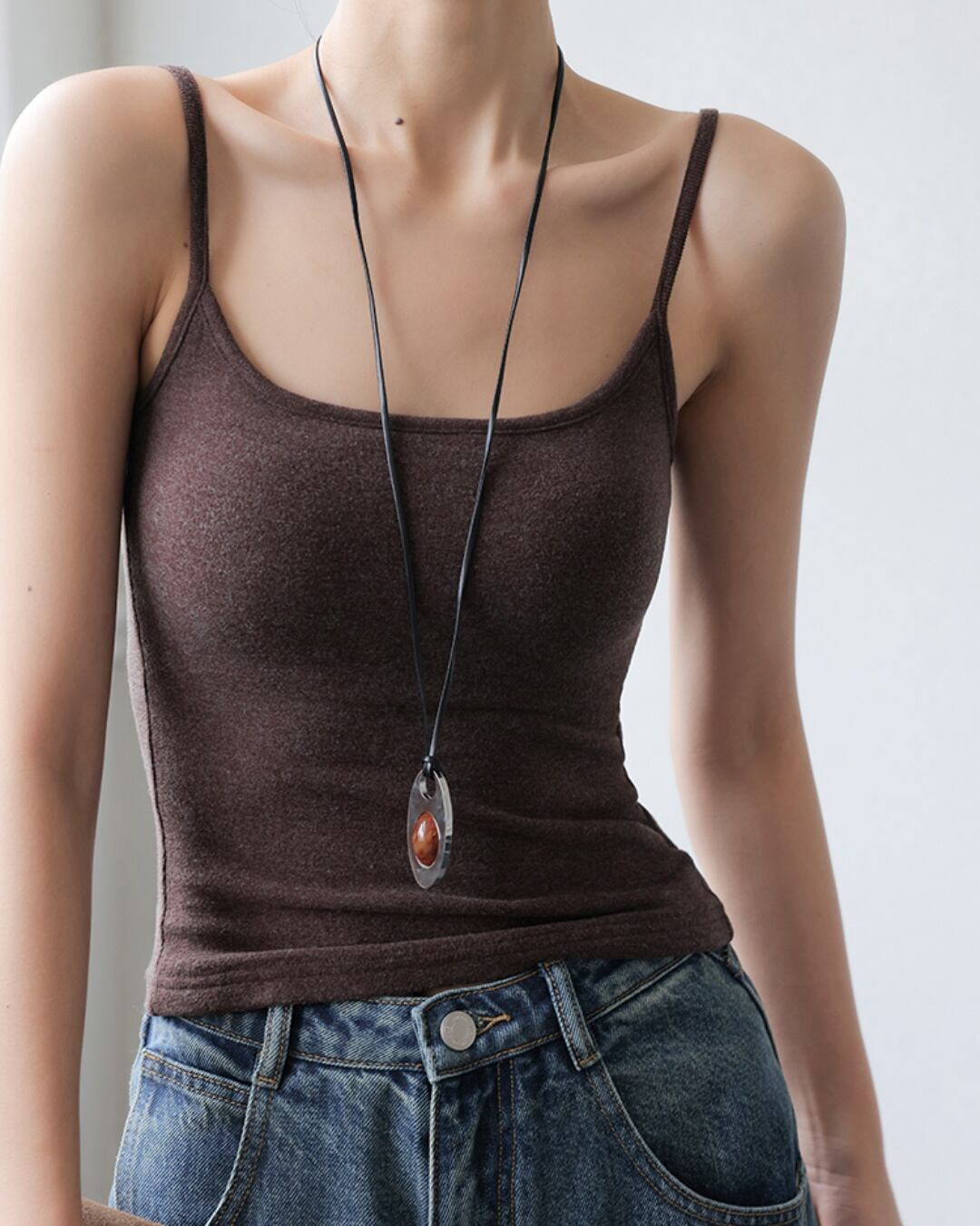 シンプルで洗練された印象を与えるシンプルキャミソール。
