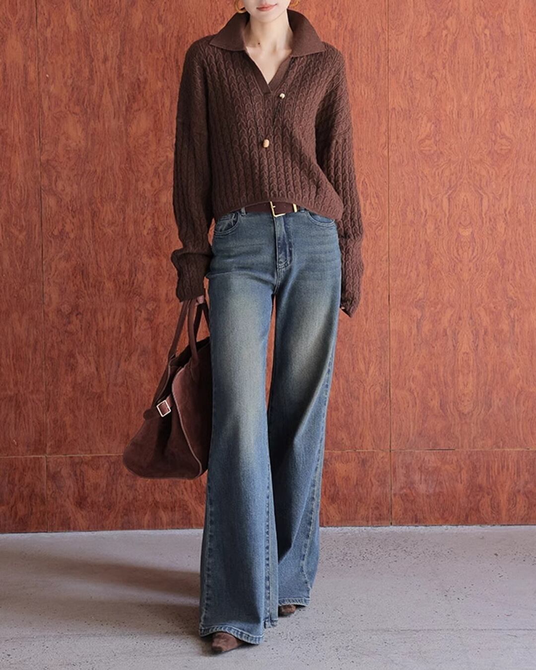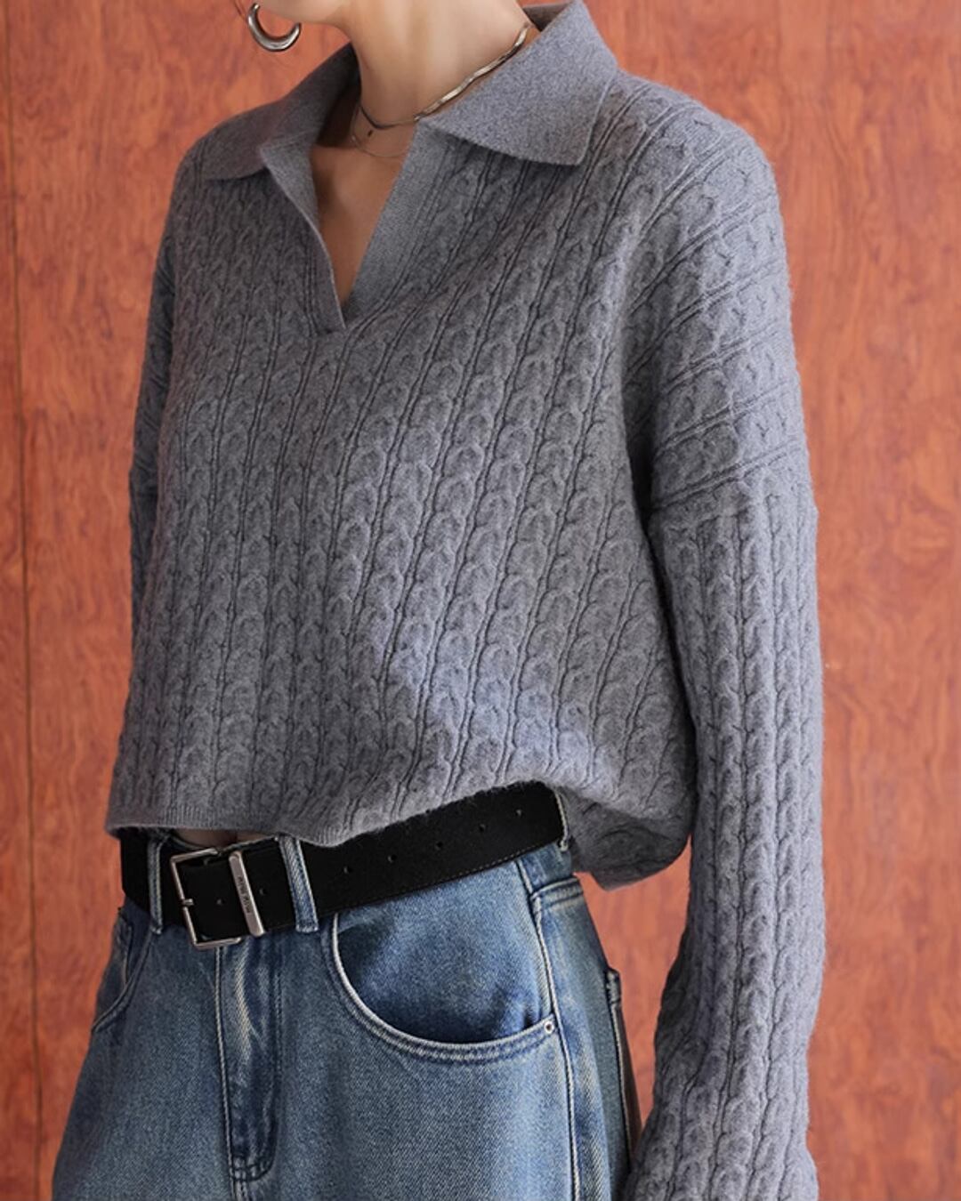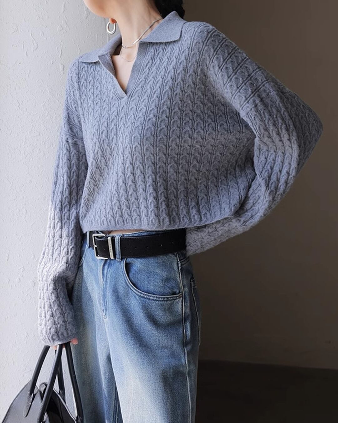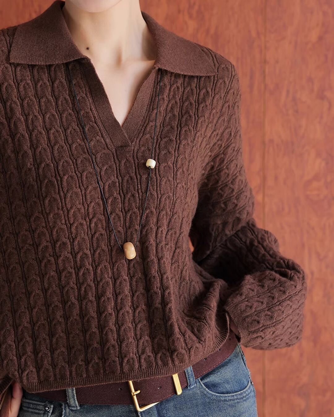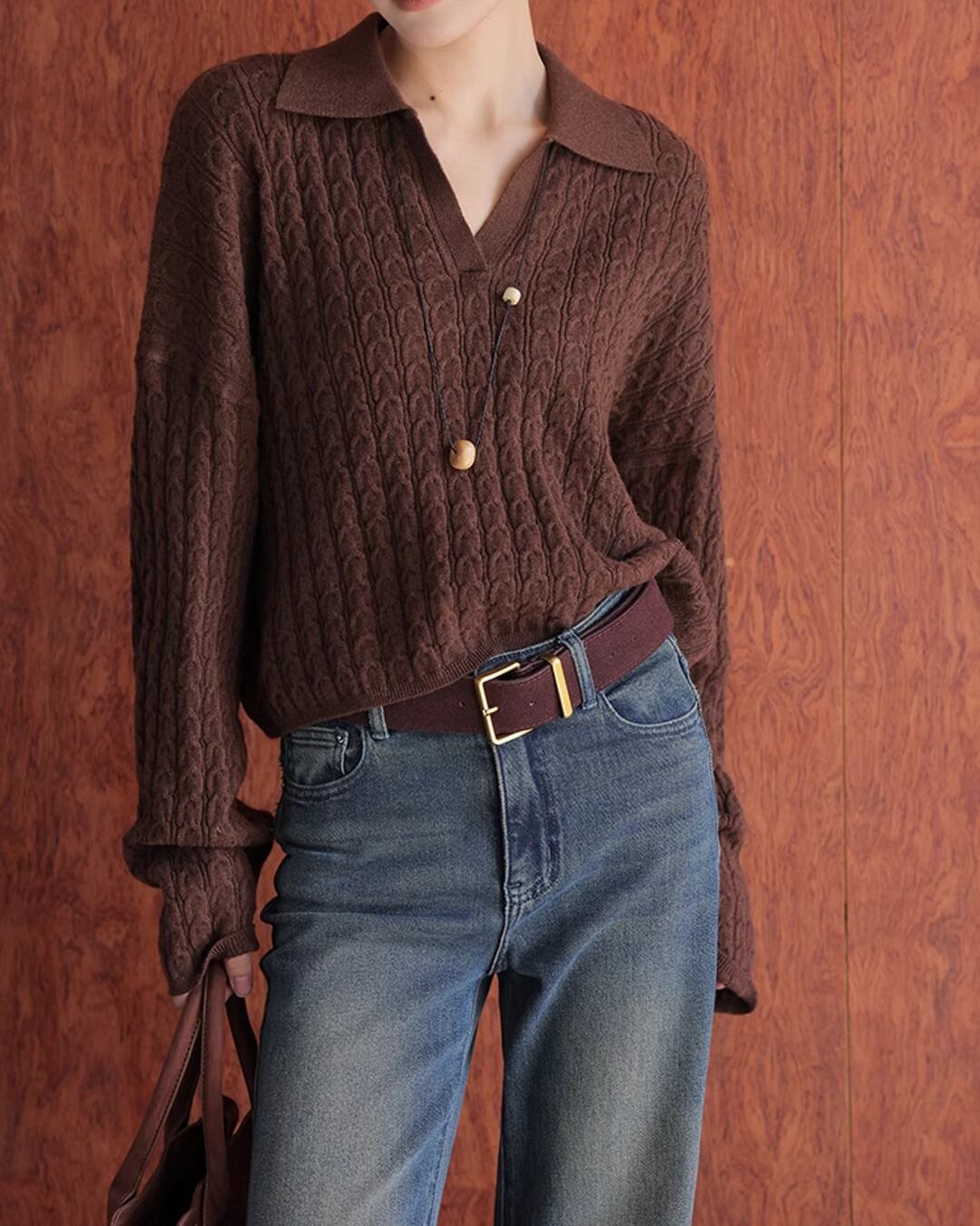 ポロ襟×スキッパーデザインがレトロながらも大人な雰囲気を醸し出します。